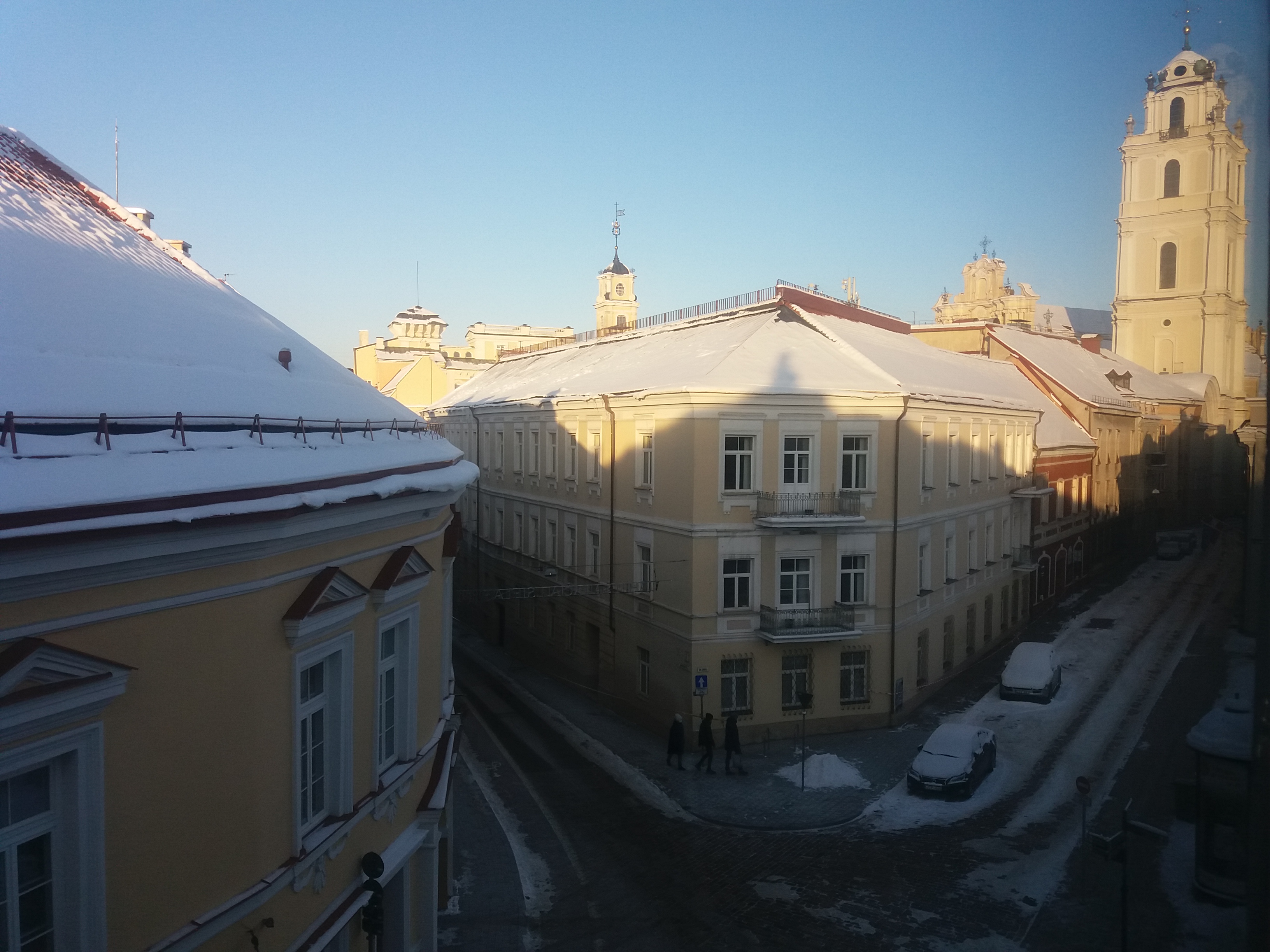 라디에이터 온도가 한없이 높아져서 손을 오래 대고 있으면 데일 것 같은 느낌이 든다. 밖을 걷다 보면 속눈썹에 얼음 결정이 맺혀 깜빡깜빡할 때마다 내가 오늘 세수를 안 해서 아직 눈곱이 붙어 있나 뭐 이런 생각이 들기도 한다. 물론 이런 강추위도 한여름 무더위도 길게 지속되지는 않는다. 모든 것이 눈 깜짝할 사이에 지나간다. 텅 빈 거리에서 이쪽과 저쪽 길 중 어느쪽으로 갈까 한참 고민했다. 어느 거리의 빵집에 들러서 빵을 사가야 조금 덜 춥게 빨리 갈 수 있을까 고민했기 때문이다. 몇 달 간 고향에 내려가 있던 친구가 다시 빌니우스에 돌아와서 장기 임대할 집을 찾는 동안 짧게 머물게 될 집에 놀러 갔다 왔다. 원래는 여행자들이 머무르는 에어비앤비 숙소인데 지금은 현지인들이 살고 있다고한다. 창 밖 오른쪽으로는 빌니우스 대학과 종탑이 왼쪽으로는 성령교회의 쿠폴이 보였다. 가져 간 빵에 커피와 차를 마시고 햇살과 그림자가 차례로 건물을 비껴가는 것을 구경했다.