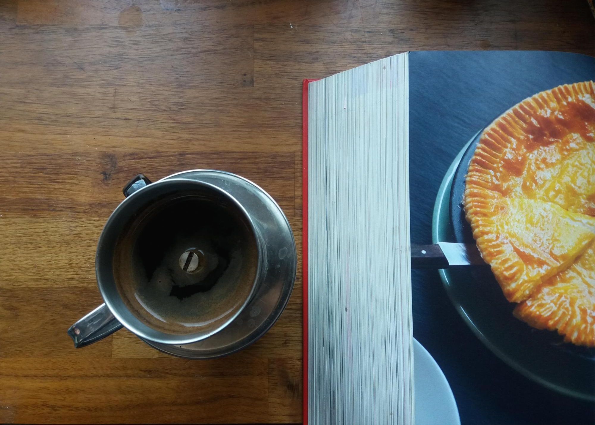 네가지 종류의 치즈가 600그램이나 들어간다는 요리책 속의 치즈 파이를 옆에 두고 입맛을 다시며 커피 방울이 떨어지는 소리를 들었다. 생각해보면 커피가 그림의 떡인 순간은 별로 없는 것 같아 좋았다. 자이살메르의 사막에서도 칸첸중가 트렉킹에서도 인스턴트 커피 한 봉지 정도는 왠지 호주머니에 있을것만 같다.