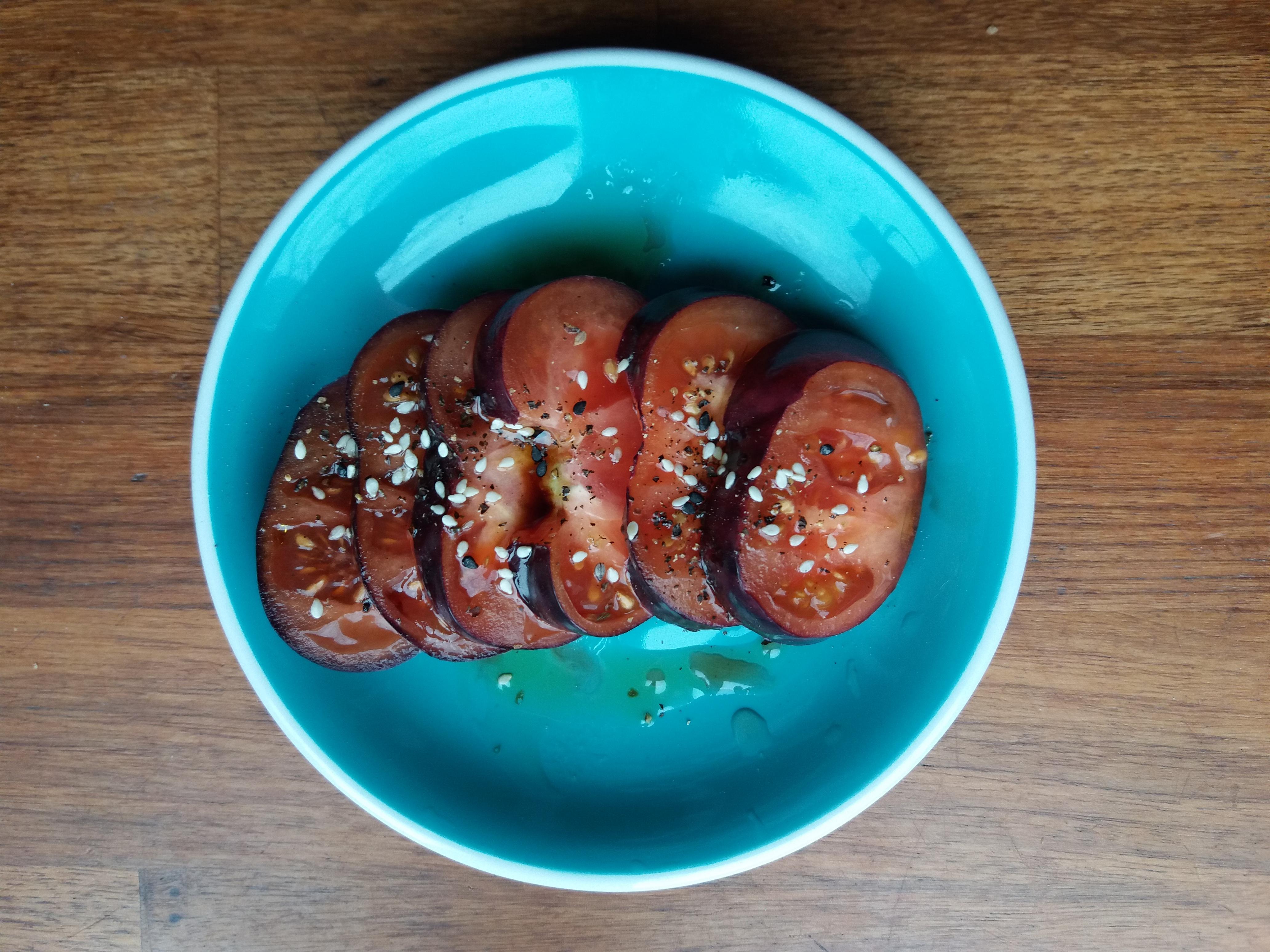 모리스라는 이름의 보라색 토마토가 팔길래 한 개 사와서 먹었다.