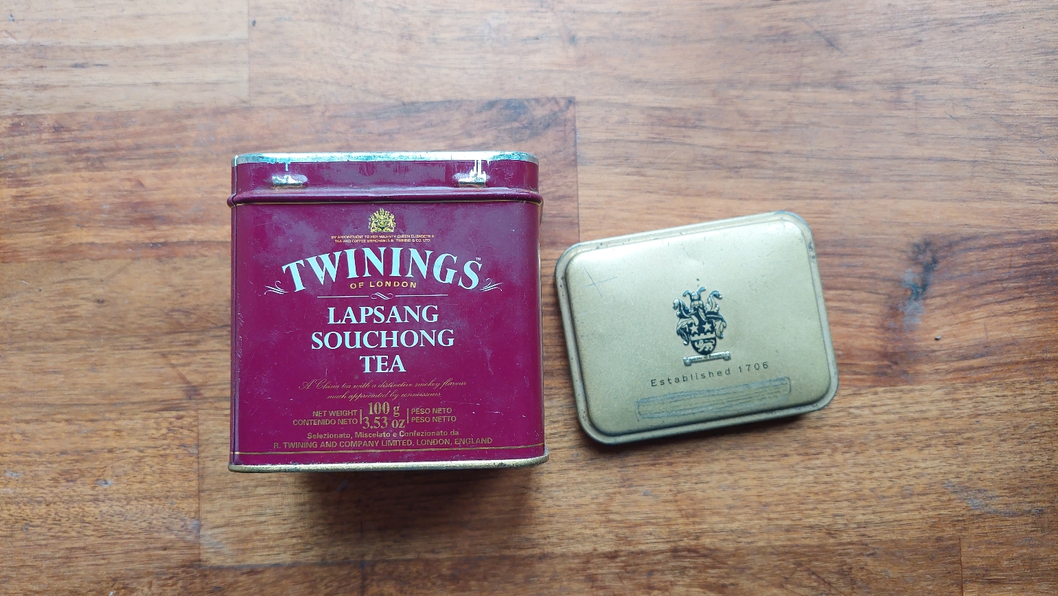 14년 전 암스테르담의 티샵에서 산 나의 첫 랍상소우총. 지금 이 틴캔은 못 통으로 쓰고 있어서 부엌을 떠난 지 오래이고 공구 가방에 들어 있는데 오랜만에 꺼내봤다. 이름만 들어도 자동 연상되는 특유의 향기 때문인지 공구상자와도 의외로 잘 어울림. 게다가 색이 예뻐서 칠이 벗겨진 각종 깡통 사탕들과 구두약 비주얼의 오래된 틴캔들 사이에서는 군계일학이다. 마트에 트와이닝스 차들은 종류별로 많지만 지금도 그때도 랍상은 없었으니 처음 본 이 이국적인 이름의 차를 덥석 집었었다.
