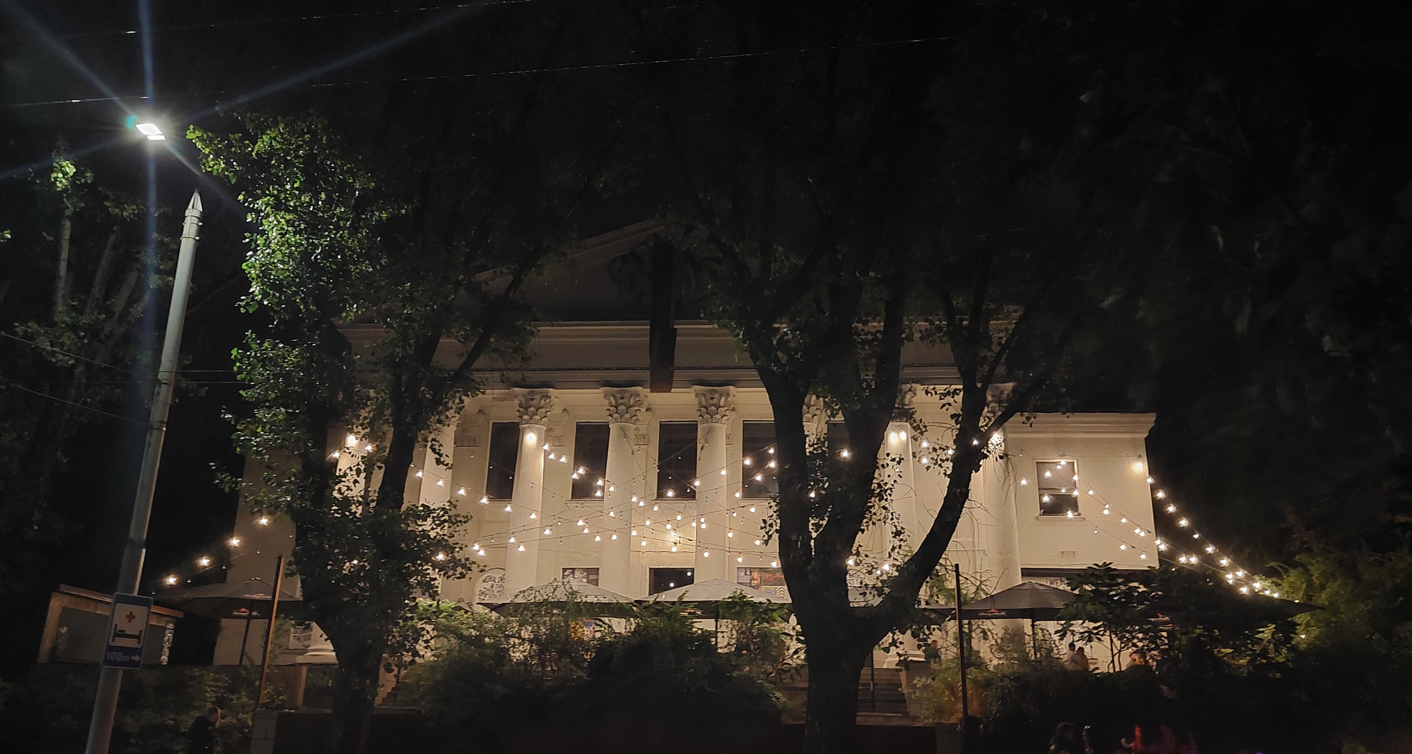 버스 정류장 앞.
