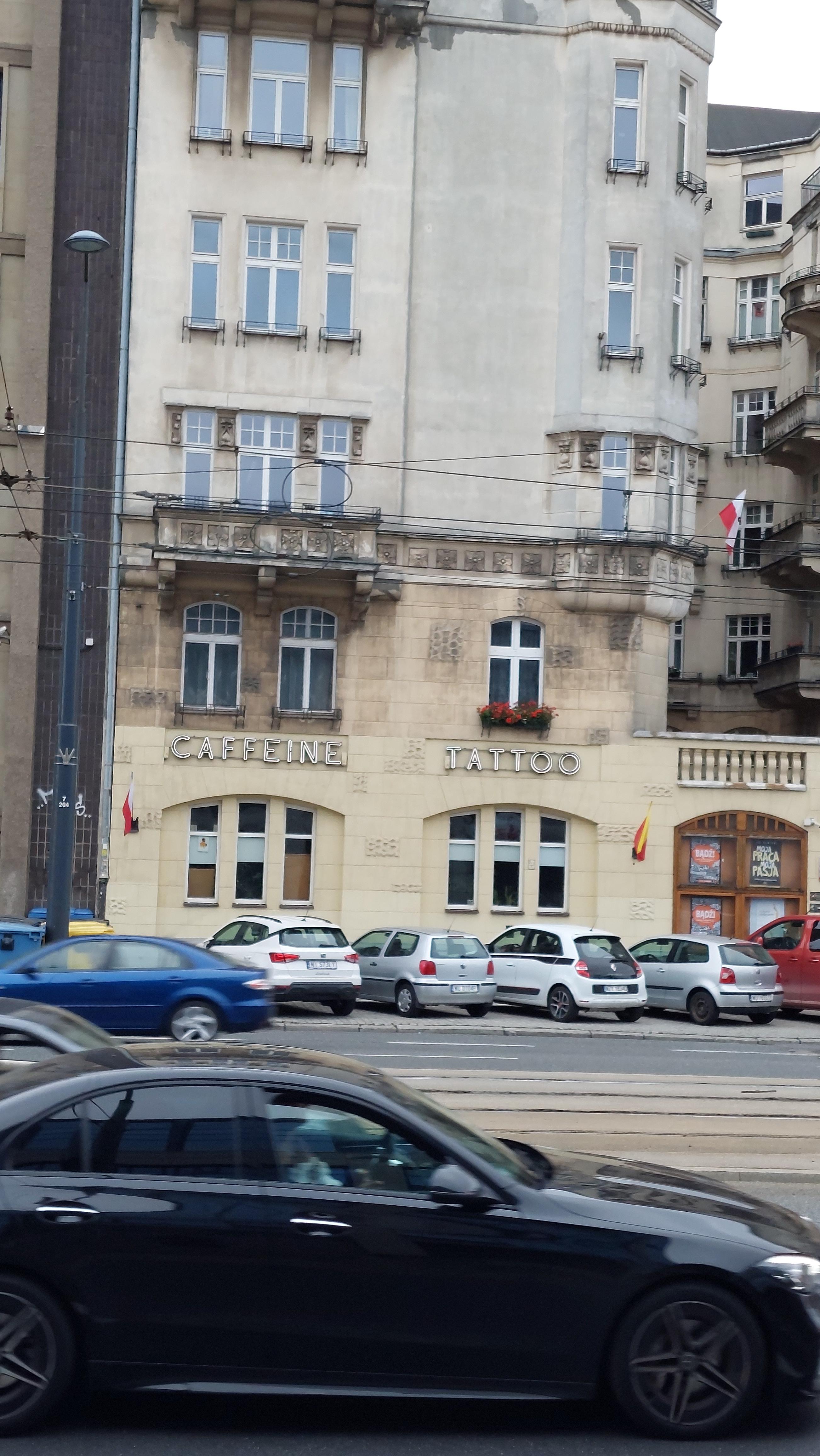 어쨌든 버스시간까지 시간이 많았으니 이런 터미널 동네의 카페들을 가보자 해서 카페 두 개를 검색해서 (친구로부터 구글맵에서 장소를 찾으면 깃발을 꽂는 기술도 전수받았다) 널찍한 도로를 횡단하려고 기회를 노리고 있을 때 건너편 도로에 익숙한 간판이 보였다. 카페인은 리투아니아 카페 체인인데 여기까지 있나? 하기엔 뭔가 그 외관이 미심쩍었지만 간판의 글꼴이 너무 비슷했다. 하지만 어디에도 따뜻한 조명의 카페 분위기는 흘러나오지 않고 옆의 타투 간판과 같은 폰트로 연결되어있는 것을 보며 그냥 카페인 타투라는 타투 스튜디오인가 보다 하고 검색해보니 정말 그랬다.