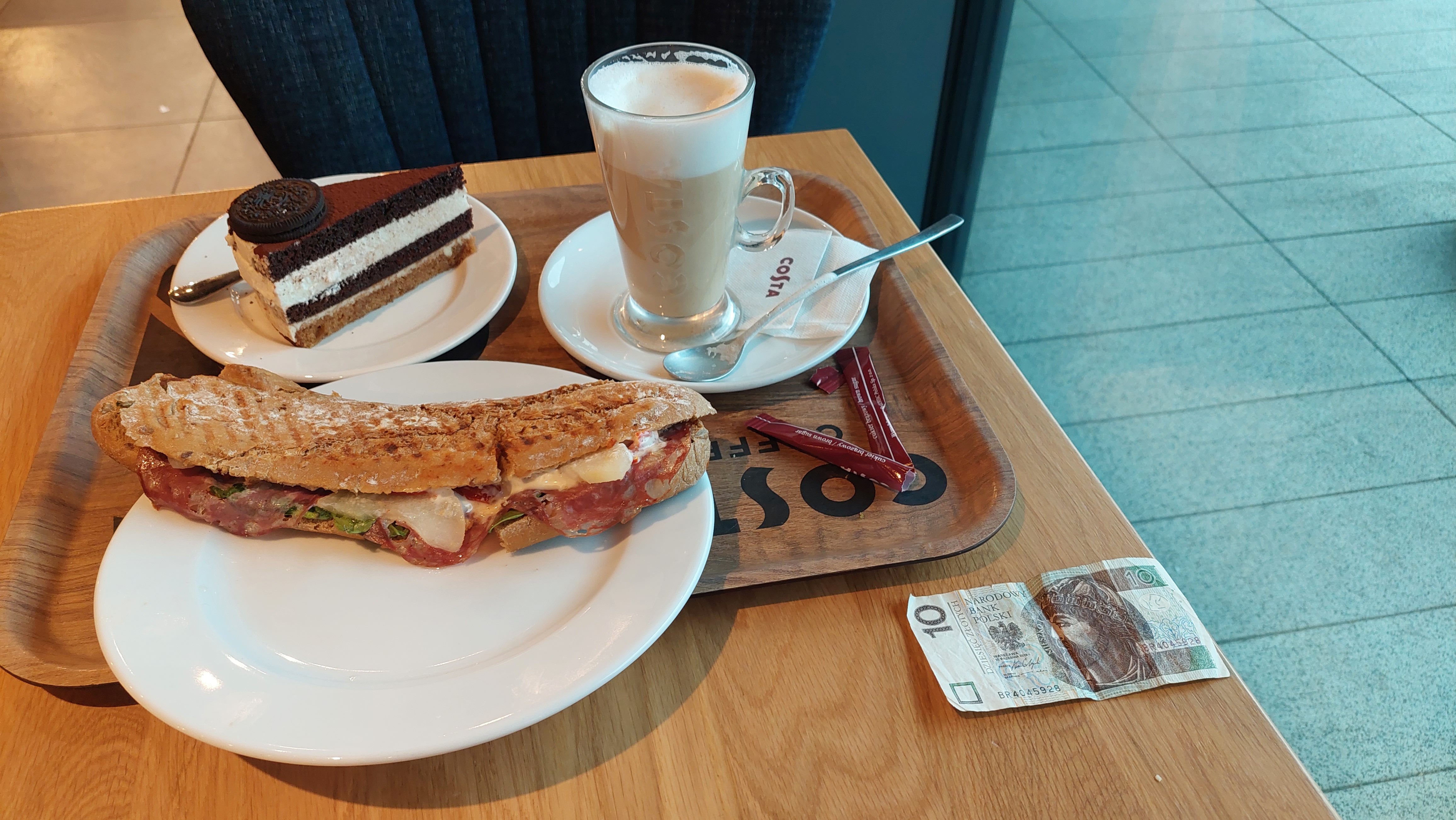 터미널 근처에 와서 밤차를 탈 때까지 코스타 커피에서 시간을 보냈다. 혼자서 서둘 곳이라곤 없으니 역시 오래 앉아 있어도 자리가 불편하지 않은 이런 대형 카페에 머물게 된다. 며칠 전 바르샤바에 아침 6시에 도착해서 중앙 역을 향해 걸어갈 때 처음 봤던 카페였지만 그래도 다소의 추억이 남아 있을 중앙역까지 가서 아침 커피를 마시자는 생각에 카페인의 유혹을 뿌리치고 내 갈길을 갔었다. 이렇게 '다음에 오면 되니깐 우선 딴 데부터 가자' 하고 안 가는 경우 아예 갈 기회를 놓쳐버릴 때가 있는데 8차선 도로를 건너기 싫었던 게으름 덕분에 계획대로 오게 되었다. 앉아서 친구에게서 받은 책들을 좀 훑어보고 전자책을 읽고 바르샤바에서 썼던 영수증들을 뒤적이며 마치 꽤 오래전에 있었던 여행이라도 되는 것처럼 회상에 젖었다. 즈워티를 400 정도만 환전을 했는데 대부분은 대사관에서 사용했고 남은 돈 40을 카페에서 쓰려고 일부러 샌드위치에 케익에 커피까지 이것저것 시켰다. 폴란드 동전이 궁금했기 때문이다. 32.5 정도가 나왔다. 그런데 직원은 10 즈워티 짜리 지폐를 고스란히 돌려주었다. 거슬러줄 동전이 그도 부족했기 때문이다.