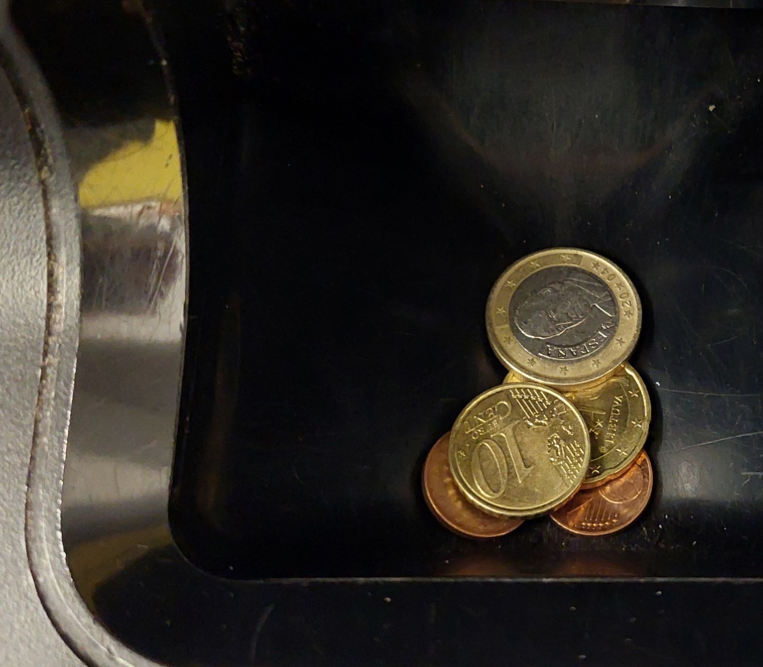 리투아니아에서는 11월 1일 부터 5000 유로까지만 현금 계산이 가능하다. 리투아니아에서 여행을 하다가 현금 5001유로를 주고 일시불로 계산 할 수 있는게 뭐가 있을까 아무리 생각해봐도 떠오르지 않으니 불법 행위를 저지를 확률도 낮은것으로. 월급도 은행 이체만 가능하다. 현금 안 받는 카페들도 많고 현금 쓸 일이 점점 없어지지만 보통 공병을 팔고 돈을 받거나 버스 시간에 임박해서 버스 안에서 기사 아저씨에게 바로 표를 사야할때 현금을 낸다거나 하면 동전이 생긴다. 그런데 이 동전들이 모이면 또 꽤 무겁다. 셀프 계산대에서 계산을 하려고 카드를 꺼내다가 무거운 지갑을 비울겸 동전을 넣었는데 또 이만큼의 거스름 돈이 쏟아져 나왔다. 하지만 소비를 했으니 말 그대로 지갑은 가벼워졌다. 동전구에 누워계신 후안 카를로스 국왕님. 이제 멀리서 봐도 보인다. 유로 동전의 몸무게가 궁금해서 찾아 보았다. 동전 액면가에 따라서 거의 논리적으로 무거워 지지만 50센트 동전은 20센트 몸무게랑 차이가 많이나고 1유로 보다 더 무겁다. 뭔가 체급 조절에 실패하여 헤비급이 되어버린 미들급 복싱 선수 같은 50센트 동전에 여러 모로 정이 가기 시작한다.