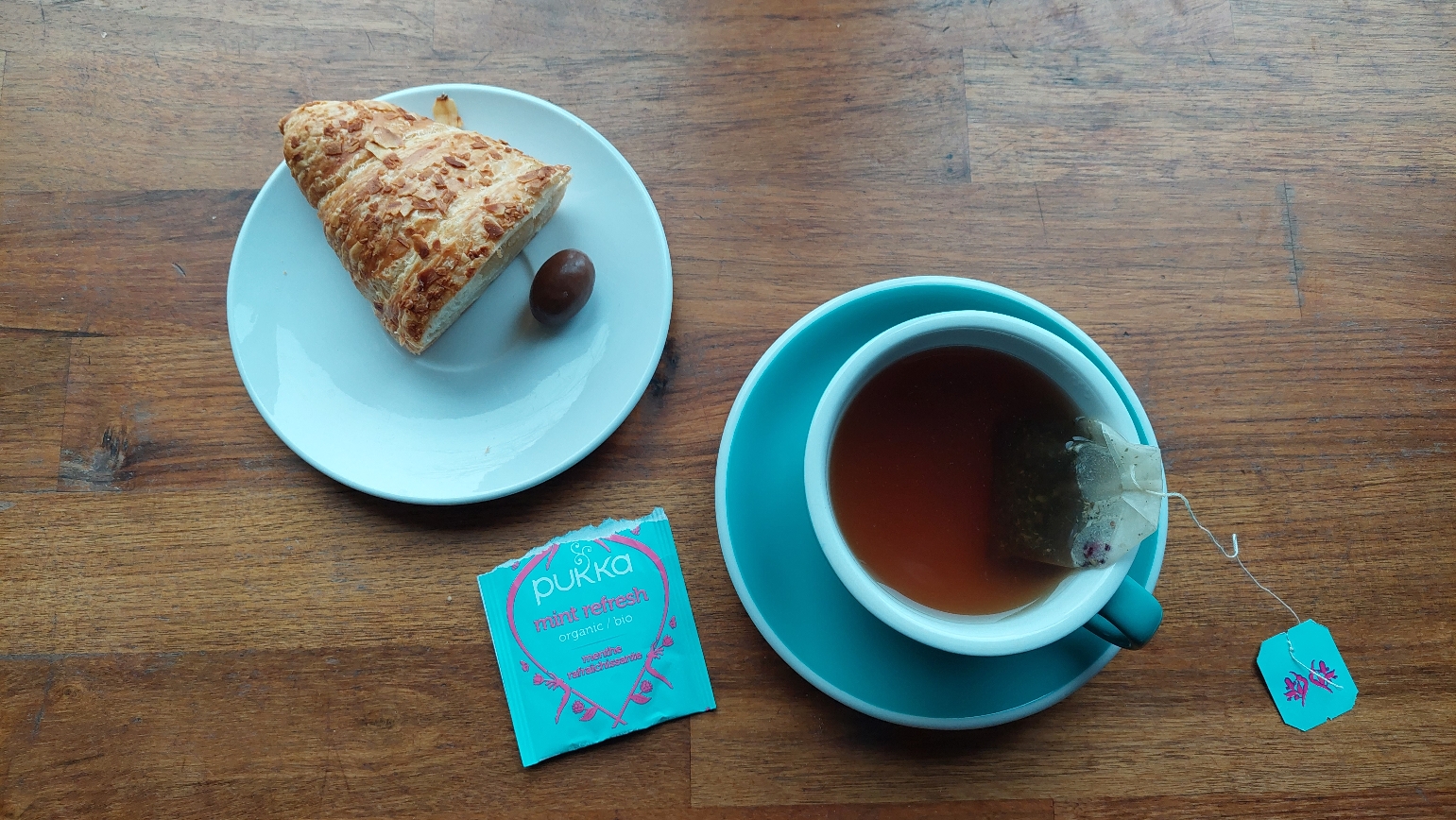거하게 차려 먹은 것으로 보면 주말 아침 같다. 민트 감초 조합.