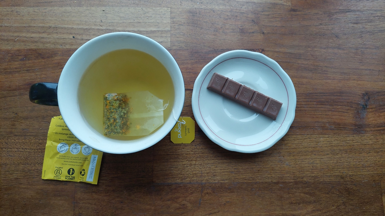 하나씩 정말 잘 분질러져서 나누기 좋지만 홀수여서 검은 속내의 킷캣. 노랑은 보통 강황이나 생강 이런 차들이다.