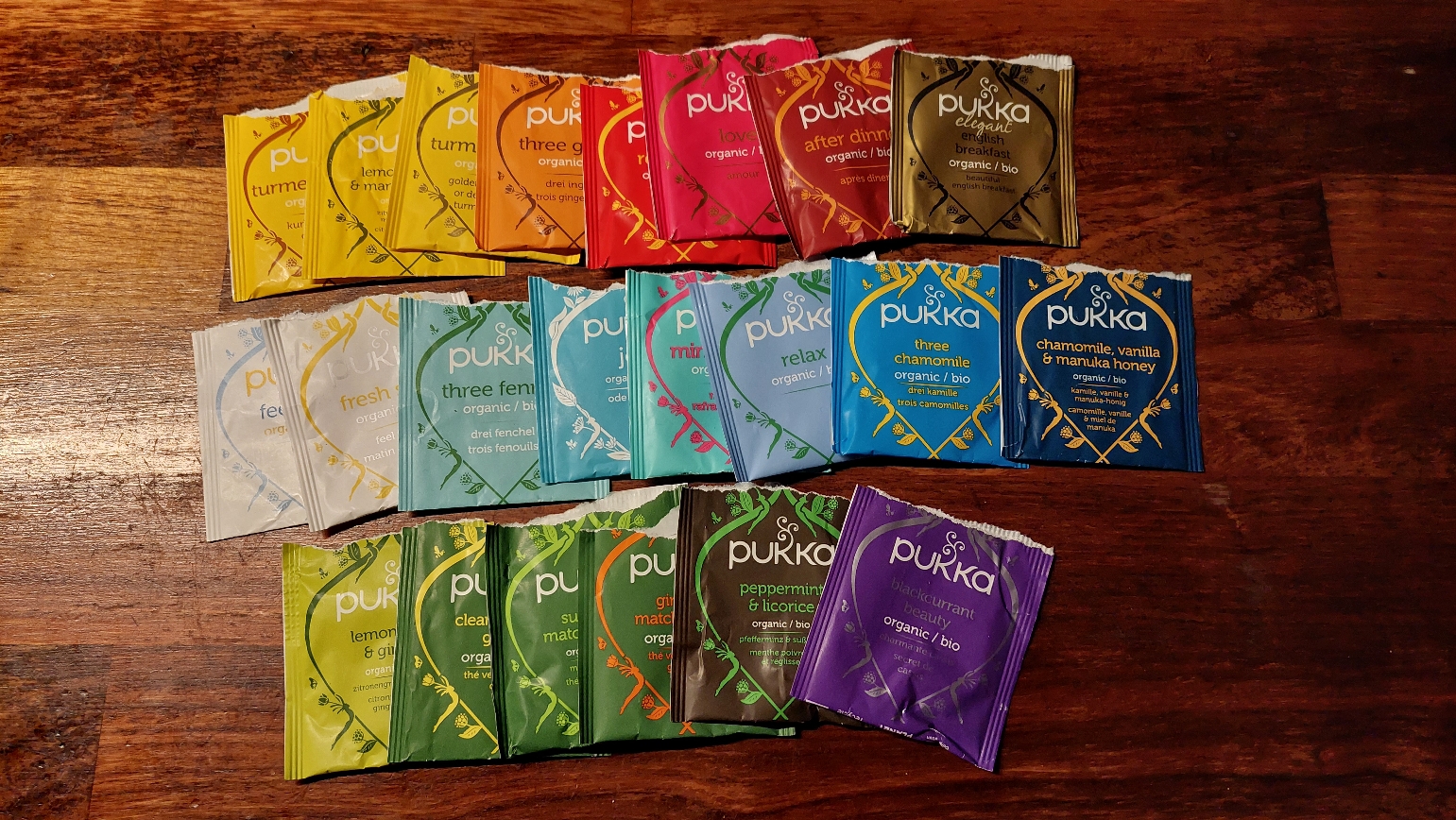 이들 차에는 보통 캐모마일, 펜넬, 카다멈, 시나몬, 레몬, 생강, 강황,민트 같은 전통 주자들이 기본적으로 포진되어 있으며 거기에다 이제 말차, 감초 같은 것들이 추가가 된다. 마치 몇 종류의 허브들을 쭉 줄 세워놓고 모든 경우의 수에 따라 배합해서 만든 시제품들을 검토하기 위해 내려오신 화통하고 귀찮으신 윗분이 이것저것 고를 것 없이 그냥 전부 일괄 생산에 들어가도록 해 하여 만든 차의 느낌이 있다. 그렇게 정해진 조합들에 다시 꿀이나 카카오, 바닐라 이런 뭔가 달짝찌근하고 향기로운 정서의 재료들이 결합되어 또 새 제품들이 무한 생산되고 그럴 때마다 디자인팀에서는 이젠 또 무슨 기존의 색상과 최대한 덜 비슷하면서도 티 안나는 안 써본 듯한 색상을 써야 하는지 고민하는 광경이 눈 앞에 그려진다. 차의 성분을 볼때마다 그래 이들이 또 애썼구나 싶은 마음에 웃음이 난다.