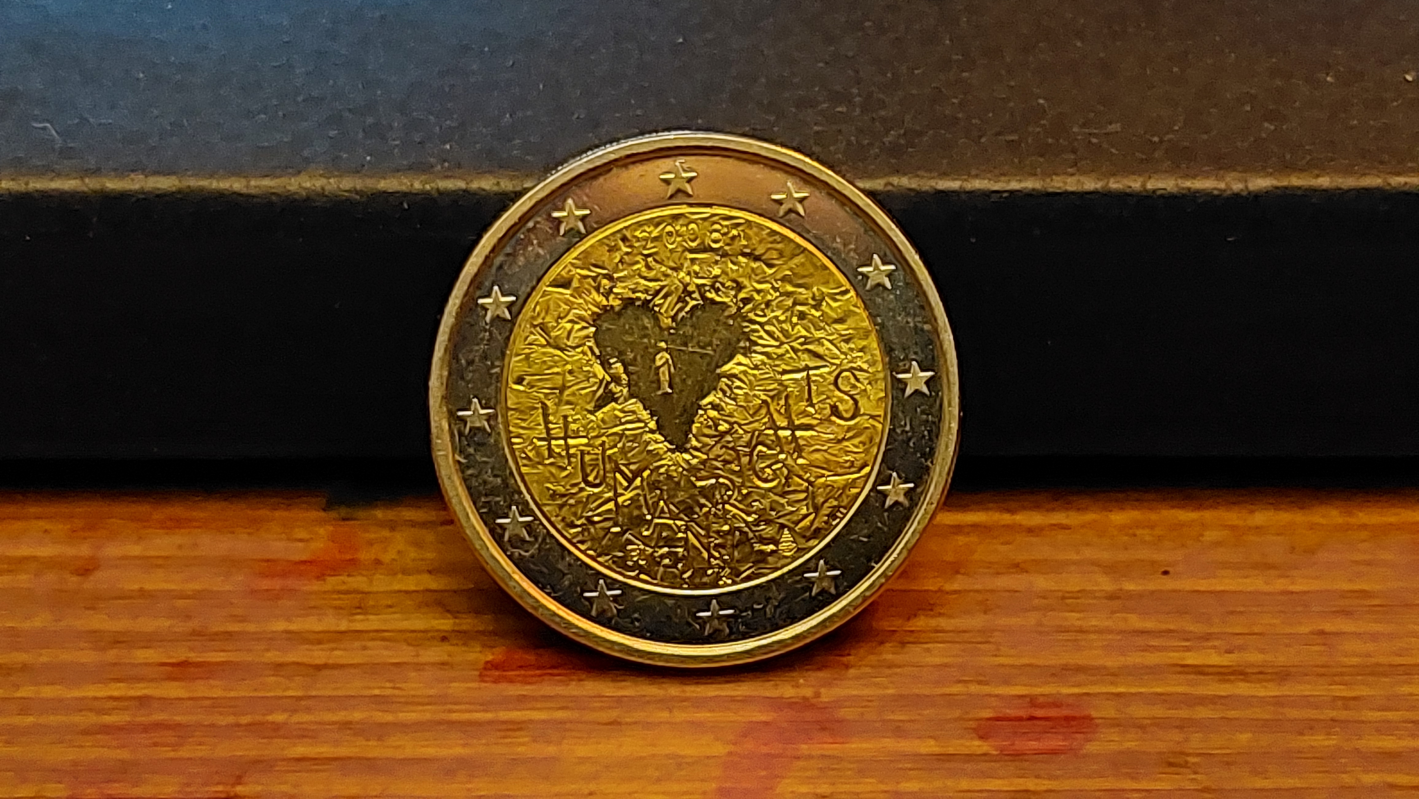 이 동전은 11월에 연극 보기 전에 극장 앞 카페에 잠깐 들어갔다가 거슬러 받았다. 커피가 요란하게 갈렸고 막간을 이용하여 바리스타는 뒤돌아서서 또 다른 주문을 받기 시작했다. 나는 내 커피가 나올 반대편 지점에 서서 계속 동전을 쳐다봤다. 처음 봤을 때는 인권 수호에 진심인 누군가가 작정하고 미친 듯이 긁어서 아주 훌륭한 장난을 쳐놓은 건 줄 알고 감탄했는데 알고 보니 세계 인권 선언 60주년을 기념해서 2008년에 핀란드에서 발행된 기념주화였다. 이 동전은 총 백오십만 개가 발행되었다. 백사십구만구천구백 개 정도는 여전히 어딘가를 헤매고 있을 거고 구십구 개는 어디 트레비 분수나 벨베데레 궁전의 분수대에 던져졌을지도 모르겠다. 나에게 온 하나는 잠시 선반 위에 놔뒀다.