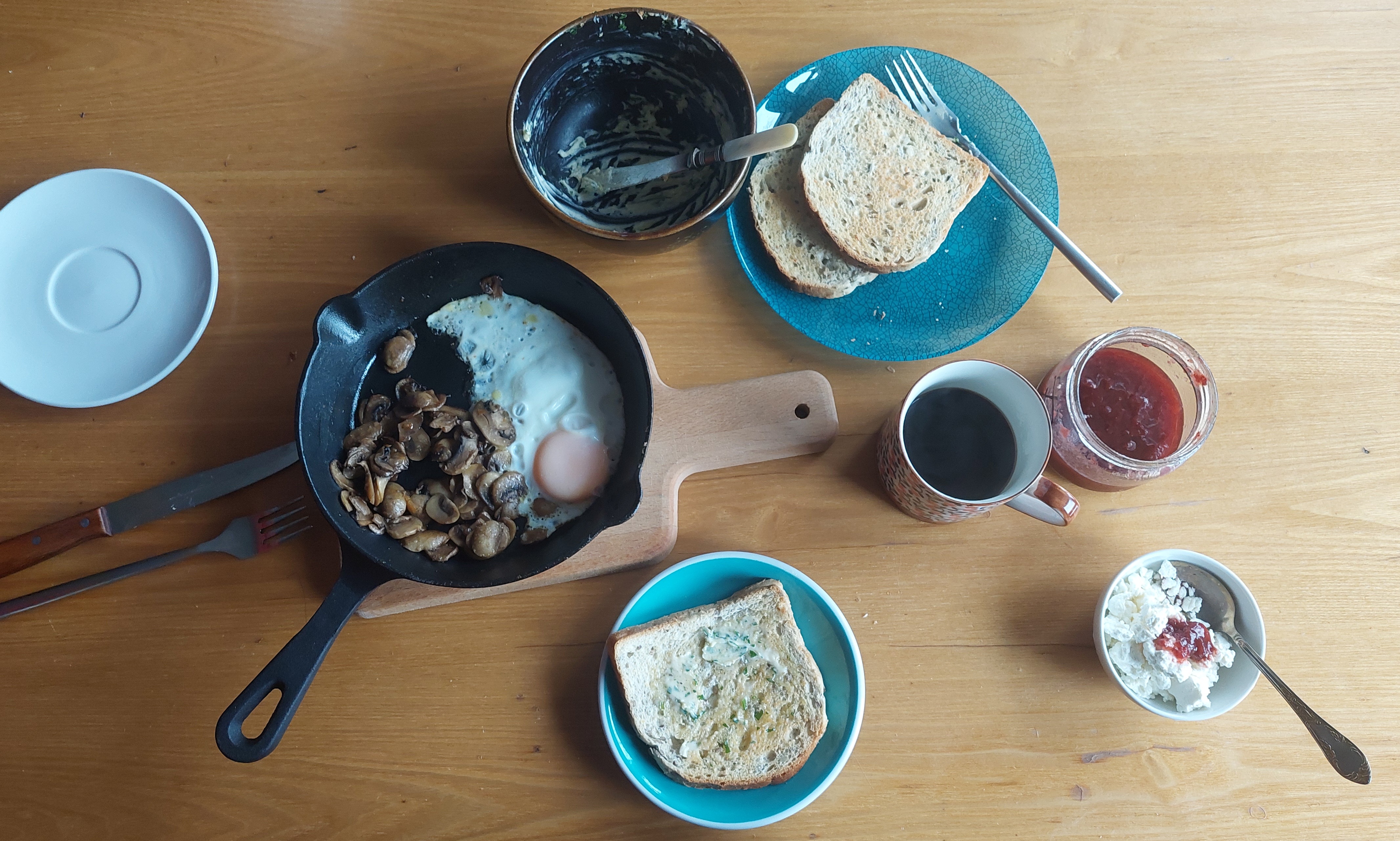 버터를 좀 더 그릇에 남겨 둘걸 아쉬워하며 모자라게 발라 먹은 다음날 아침.