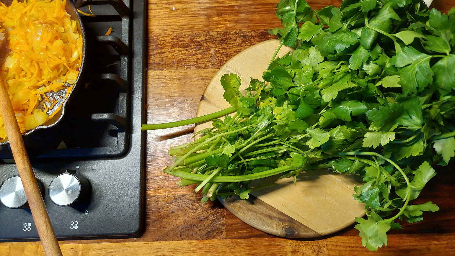 그래서 우선 파슬리 버터를 만들기로 했다. 리투아니아에서는 파슬리를 차로도 곧 잘 끓여 먹는다. 파슬리 하면 정말 기억에 남는 노래가 있다. 바로 밴드명부터 이미 뭔가 축복스러운 사이먼 앤 가펑클의 스카버러 페어. 들으면 누구나 다 아는 노래지만 막상 제목만 들어선 잘 모르는 노래. 이 노래를 오랜 세월 동안 흘려 들었을 땐 가사가 귀에 또박또박 들어 올리도 없고 그저 참 성스럽고 고전적이고 새벽 어스름에 이슬 내린 것처럼 고요하고 청초한 멜로디로구나 하고 지나쳤는데 언젠가 가사를 눈으로 따라가며 음악을 들었을 때 느닷없이 '파슬리 세이지 로즈메리 앤 타임' 이렇게 나와서 놀라고 황당했었다. 마치 정태춘 박은옥의 노래에 '부추 쑥갓 미나리 앤 쑥' 이런 가사가 나오는 느낌이랄까. (심지어 스카버러 페어에 한국 나물 가사 붙여도 안 어색함) 사실 오히려 정태춘 님의 노래에 이런 식물들이 등장했더라면 정겹고 시적이다 생각했을 텐데 저런 허브의 영단어들을 문학 작품이 아닌 마트의 야채 코너와 요리책에서 습득한 터라 상당히 이물감을 느꼈다.