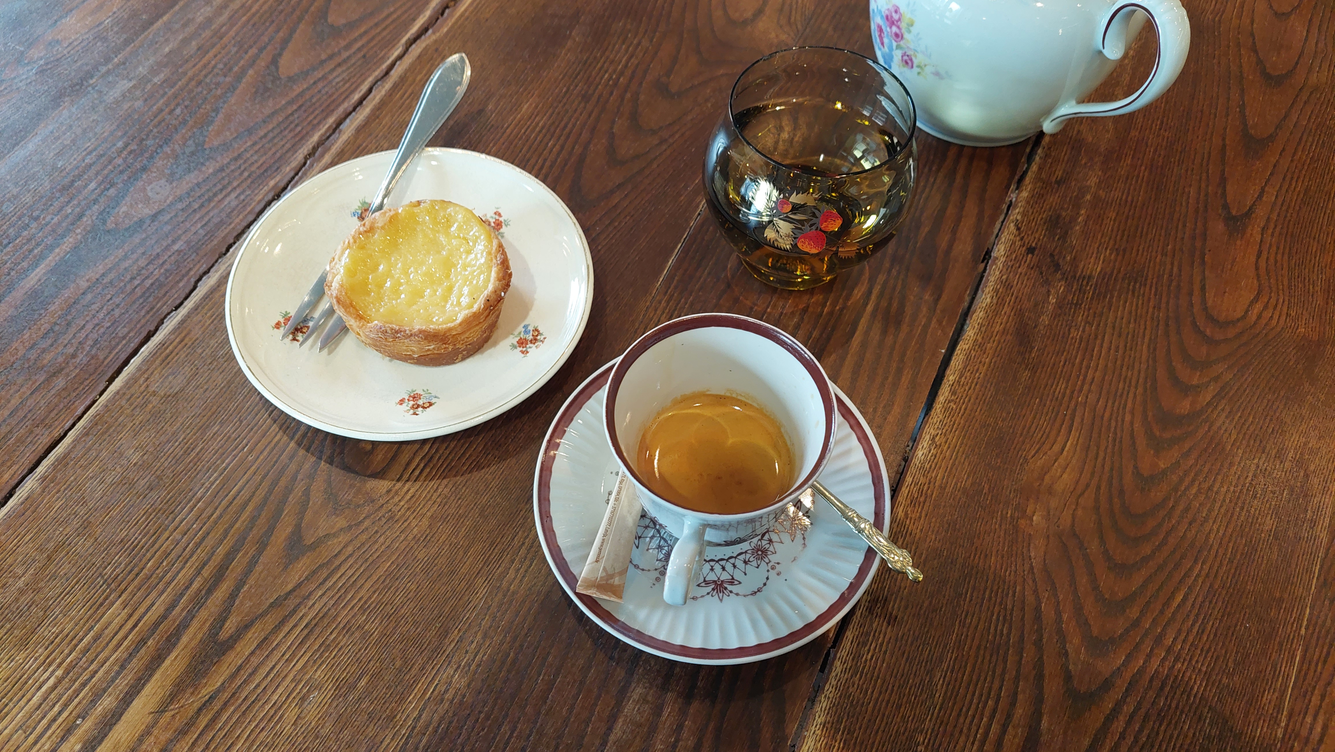 오늘 마신 에스프레소와 타르트. 눈이 확 떠지는 그런 놀랄만한 맛은 아니지만 이 둘은 정말 잘 어울린다. 에스프레소 한 잔에 시나몬롤은 뭔가 뒤꿈치가 안 맞는 큰 양말처럼 벅차고 카푸치노에 에그 타르트하나는 아직 주문한 음식이 덜 나온 것처럼 뒤숭숭한데 이 둘은 커피 한 모금에 타르트 한 조각이 마지막까지 딱 맞아 떨어지면서 서로에게 깍듯하게 빈 접시를 보인다.
