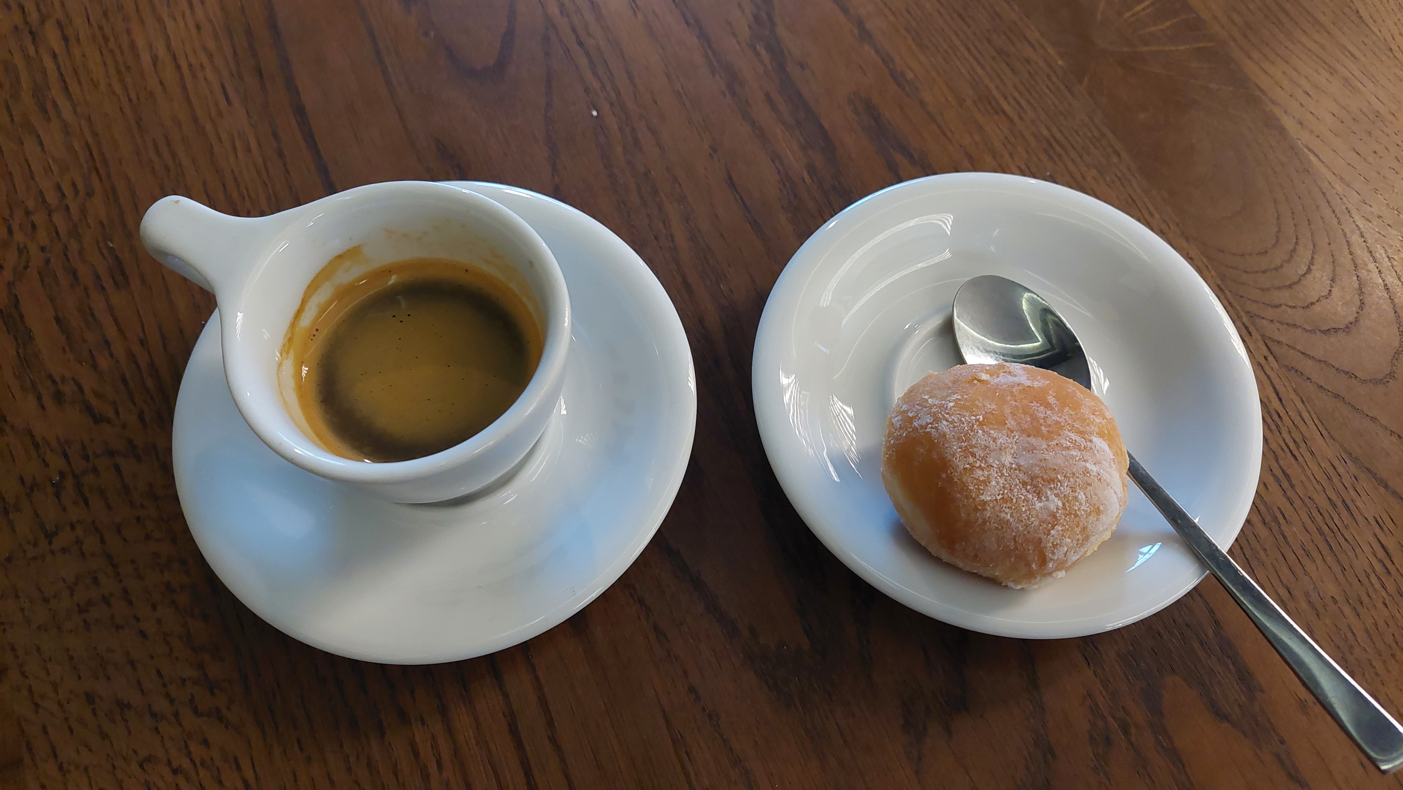 스푸르기떼 Spurgytė는 스푸르가 Spurga의 지소체인데 보통의 도넛을 스푸르가라고 부르지만 사실 리투아니아식 스푸르가는 그 모양이 우리나라의 찹쌀 도넛과 비슷하다. 코티지치즈와 밀가루와 설탕을 섞은 반죽을 기름에 튀겨낸다. 이 카페의 미니 도넛은 찰떡 아이스보다 좀 작다. 라즈베리 들어있는 던킨 도넛 식감에 속에는 연유와 바닐라를 섞은듯한 크림이 들어 있다. 이곳의 에스프레소와 이 미니 도넛도 한 모금 한 조각 커플로 과하지 않고 깔끔하다.