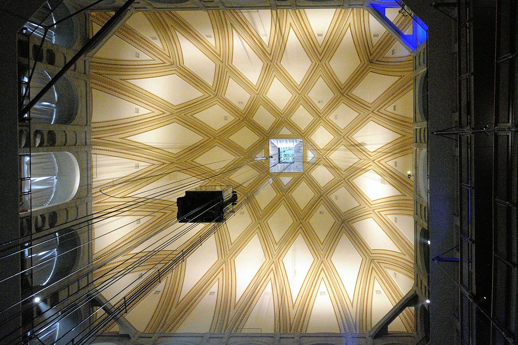 이 몰레 안토넬리아나의 건물 내부의 정중앙에서 수직 85미터에 위치한 전망 테라스까지 돔을 뚫고 올라가는 엘리베이터는 전망이나 일출 구경에 인색한 나에게도 인상적이다. 은은한 조명의 건물 내부에서 사방이 유리로 되어있는 엘리베이터를 타고 알프스가 휘감고 있는 토리노 시의 가장 높은 야외 전망대를 향해 나가는 느낌은 어쩌면 좁고 오래된 파리의 지하철이 지하의 어둠을 헤치고 달려 갑자기 멀리 라데팡스가 보이는 지상으로 나왔을 때 가슴이 뻥 뚫렸던 느낌과 비슷하지 않을까.라고 생각해서 영상을 찾아봤는데 사실 그런 드라마틱한 느낌은 아쉽게도 영상을 통해선 전혀 전해지지 않았다. 그냥 엘리베이터에서 내리면 사방이 철골구조로 막힌 전망대일 뿐이다. 하지만 건축가는 자신이 설계한 건물 내부를 저런 엘리베이터가 수직 상승하는 장면을 상상이나 했을까?