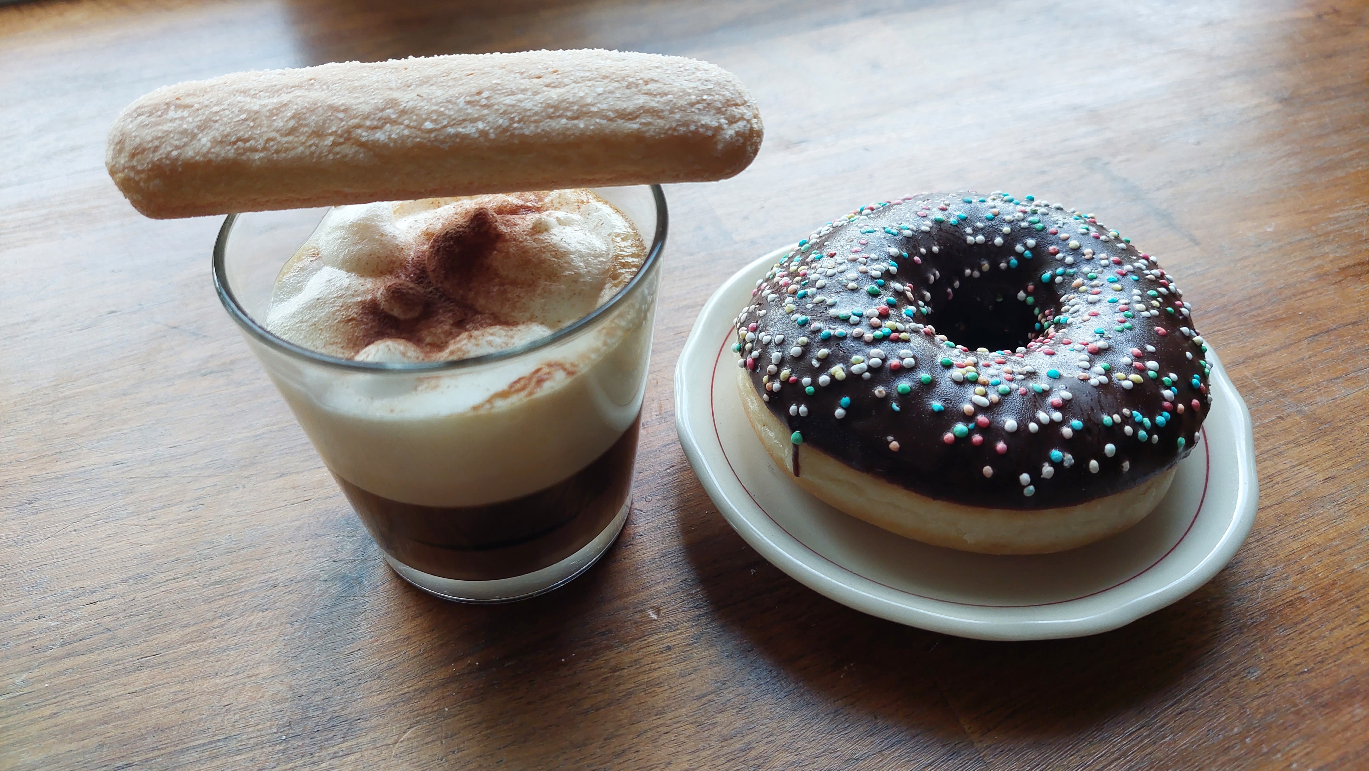 토리노의 어둠 같은 시커먼 비주얼은 사실 나오지 않지만 재료들이 섞이지 않았다는 것에 만족. 확실히 에스프레소는 기계로 추출해야지 싶고 잔이 좁고 작아야지 더 낫겠다 싶다. 분명 초콜릿 시럽을 뿌린 모카치노나 아이스크림 들어간 아포가토와는 다른 맛이었는데 신기한 건 음료 자체가 꽤 달았음에도 불구하고 곁들일만한 디저트가 생각났다는 것이다. 그러니 저 사진 속의 케이크이며 레이디핑거에 크림에 모르긴 해도 엄청 달아 보이는 저 리큐어 같은 저런 것들이 결코 과한 것이 아니었기에 나도 레이디 핑거를 꺼내서 얹어 먹었다.