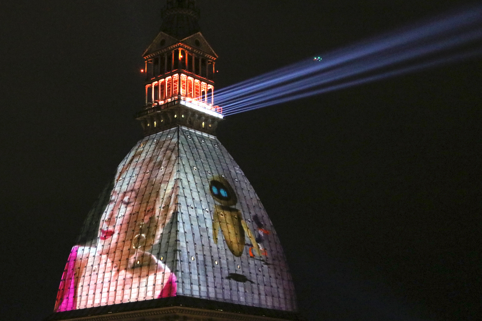 세상에서 가장 높은 영화 박물관답게 안토넬리가 굳은 의지로 얹은 돔을 각종 이벤트에 적극 활용하는 모습.