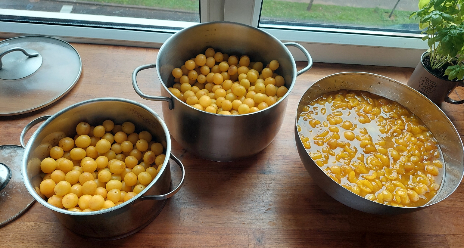 지난달에 동료가 바람이 불어 마당에 노랑 자두가 많이 떨어졌는데 그걸로 뭘 해야 할지 모르겠다고 주겠다고 했다. 20년 넘게 그 집에 사는 친구가 자두의 용도를 모를 일이 없다. 이제는 다 귀찮아서 자두로 아무것도 하고 싶지 않다는 의미이다. 며칠 후에 정말 큰 비가 오더니 자두가 전부 다 떨어졌다며 줍느라 너무 힘들었다고 다 가져가라고 하는 친구. 그래서 가져왔다. 작은 정교 성당 앞 벤치에 한번 앉고 구청사 계단에 한번 앉고 가톨릭 성당 앞에 한번 앉으니 얼추 집에 도착했다.