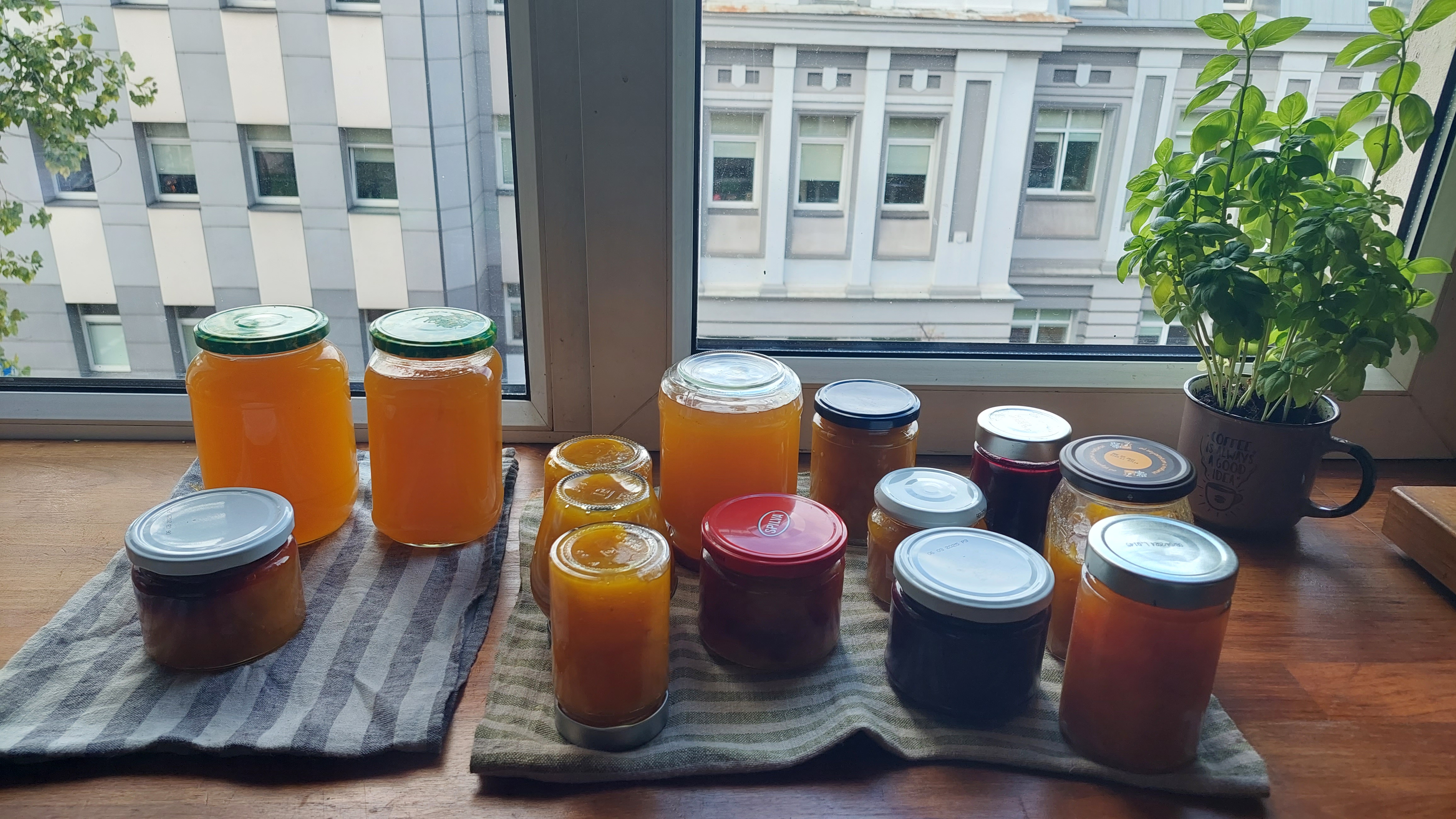 유리병을 본래 그냥 뜨거운 물을 휘휘부어 헹구는 걸로 소독의 임무를 다 하곤 했는데 이번엔 양이 많아 보관 기간이 길어질 것 같아 일괄 100도 이상 오븐에 넣어 놓고 하나씩 꺼내 채웠다. 사실상 가장 편하고 좋은 방법 같다. 갑자기 생긴 자두에 집에 있는 모든 빈 병들을 총출동시켜야 했으나 짝이 맞지 않는 뚜껑들이 많아서 애를 먹었다. 자두즙은 일 대 십으로 탄산수와 섞어 마시거나 물에 희석해서 막대 아이스크림으로 얼려 먹는다. 8월의 자두잼을 나누면서 9월이 그렇게 다 지나갔다.