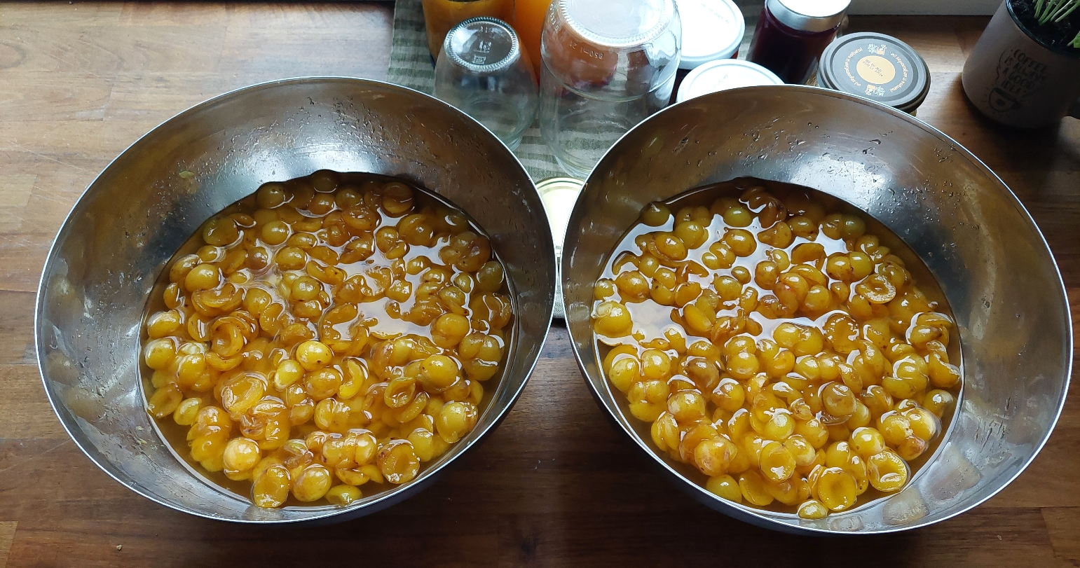 이렇게 설탕이 다 녹아 자두들이 잠길 정도가 되면 그냥 휘리릭 한번 펄펄 끓여서 마무리 짓는 게 내가 제일 좋아하는 방법인데. 그렇게 끓여서 그냥 바로 유리병에 넣으려고 했으나 생각보다 즙이 너무 많이 생겨서 결국 체에 걸러야 했다.