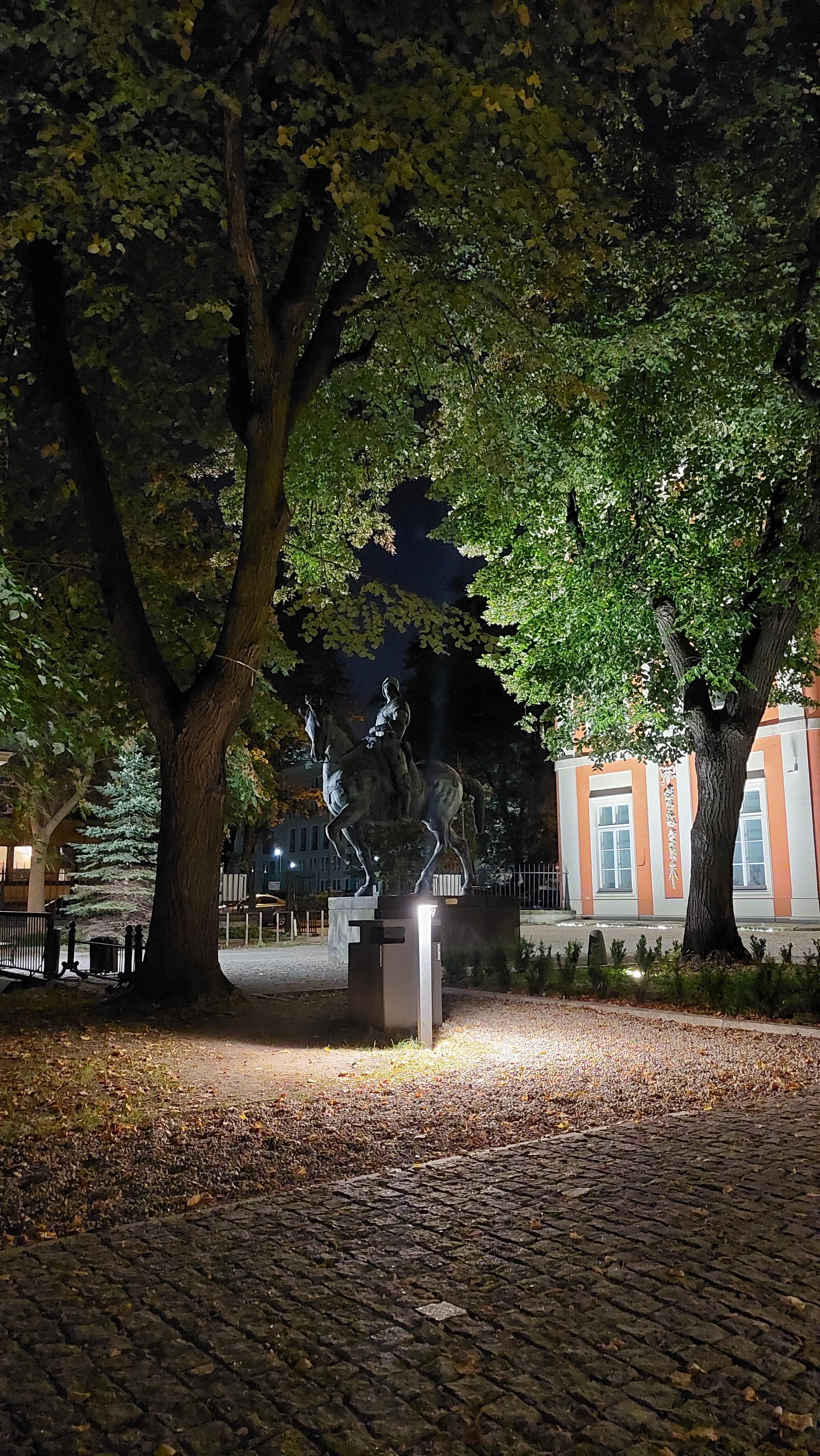 늦은 저녁 짐을 풀고 물을 사러 밖으로 나왔을 때 궁전을 끼고 꺾어야 하는 것을 잊고 그냥 직진하는 바람에 다시 돌아와야했다. 그대로 가서 꺾었어도 목적지에 다다랐겠지만 기마상을 굳이 확인하고 싶어서 다시 돌아온다. 그리고 우리는 어둠 속의 기마상을 구석구석 찬찬히 웃으며 훑어보았다. 제대로 이해할 수 없는 폴란드어 설명도 제법 진지한 자세로 읽는다.