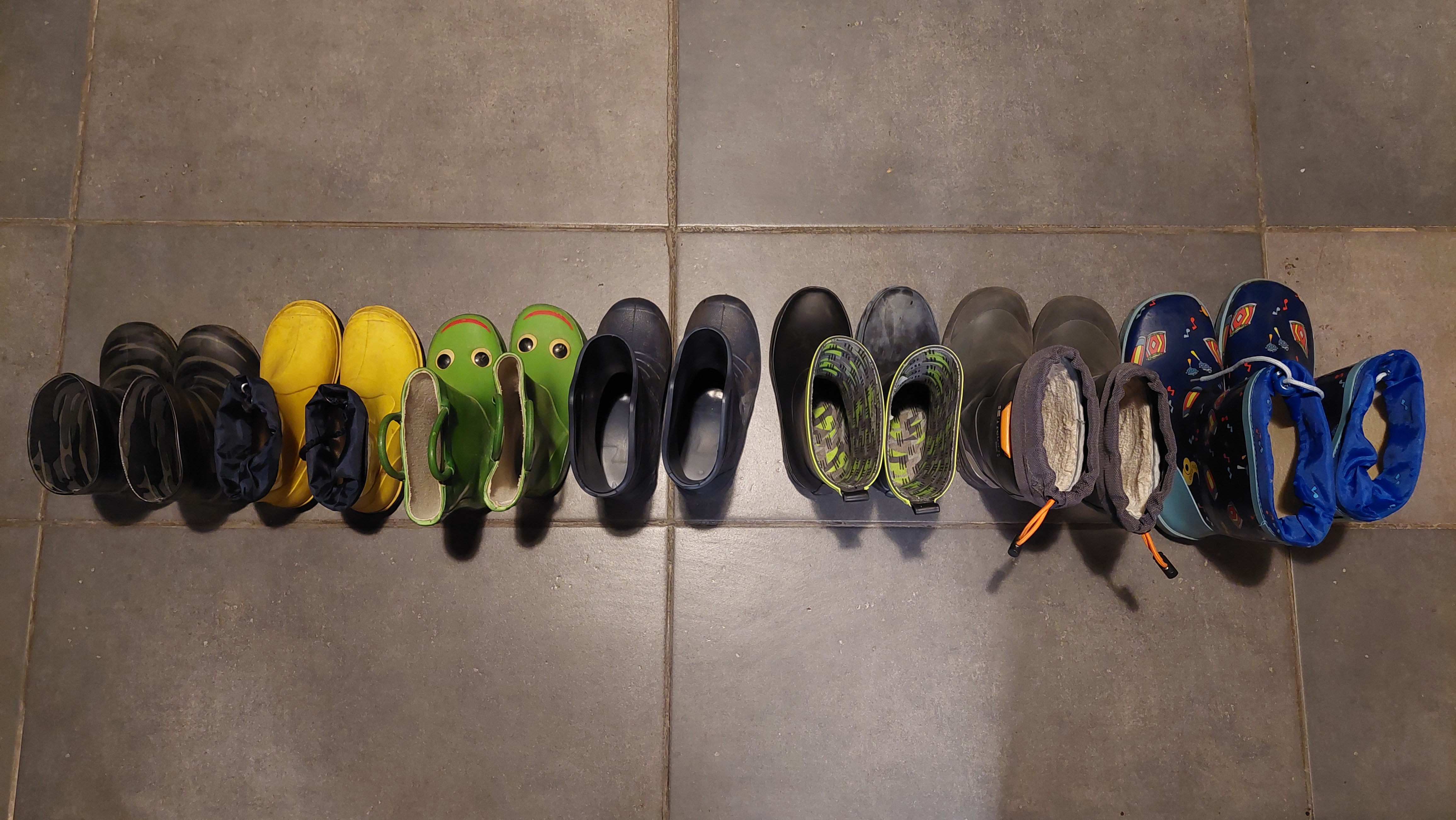 일정연령까지 아이들의 신발치수는 매해 달라지지만 철저히 계절용품이라 몇 번만 신을 뿐인 장화는 매번 새것을 사기가 애매하다. 그걸 잘 아는 사람들은 장화를 서로서로 물려준다. 그러니 집에는 과거와 미래의 장화들이 뒤섞인다.