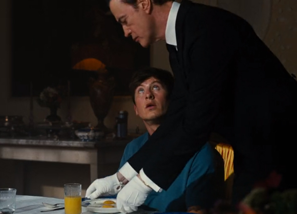 자신의 달걀 취향이 만천하에 드러나는 게 두려웠던 걸까. 배리 키오건은 뭔가에 홀린 듯 덜 익힌 달걀을 주문한다.  '노른자는 꼭 잘 익혀주세요'란 말을 간신히 참아낸 것 같다. 잠시 후 그 앞에 놓인 달걀은 덜 익은 흰자가 화면을 뚫고 흘러나올 것 같은 극단적인 써니사이드 업. 그는 결국 달걀을 먹지 않는다. 욕조에 남은 귀족 동창의 정액은 배수구 끝까지 핥았지만 자기 접시에 담긴 흐물거리는 단백질은 거부함으로써 일말의 자존심과 취향은 지키려고 한 걸까.