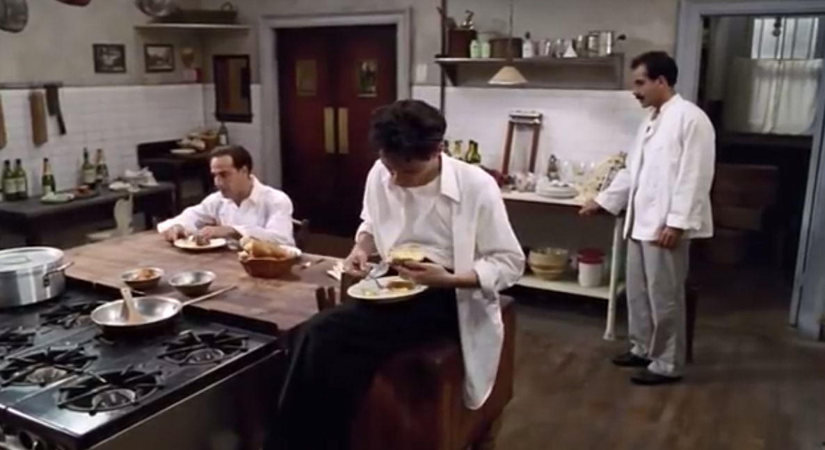 이 장면은 한 번의 끊김도 없이 실시간으로 촬영해야만 한다는 의지의 산물이었다. 6분 정도의 프리타타 씬에 대화는 거의 없다. 배우들의 동선은 자로 잰 듯 정확해야 했고 무엇보다 프리타타는 절대 팬에 눌어붙지 않아야 했다. 책 중 일부를 옮기자면,