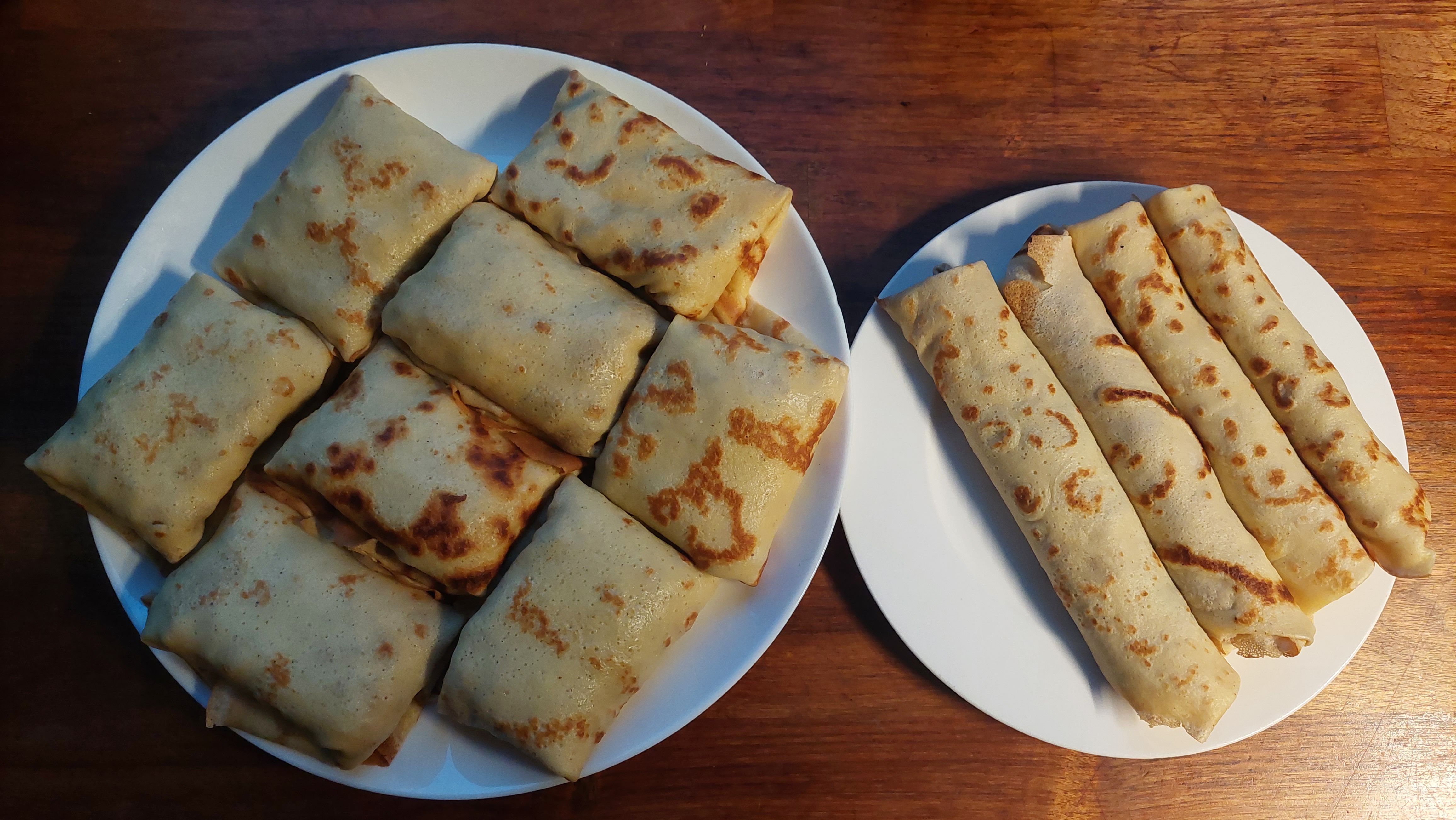 리투아니아에서는 이날 팬케익을 만들어서 유치원이나 학교에 가져간다. 전날 전부 구워놓고 다음날 아침에 속을 채워넣고 싸서 살짝 구워서 가져간다. 올해는 다진고기랑 치즈를 넣어 네모로 접고 단팥 만들어놓은 게 있어서 연유랑 섞어서 길쭉하게 말았다. 그냥 반으로 접어도 되고 부채꼴로 접기도 한다. 원하는 것을 넣고 접으면 된다. 그냥 설탕이랑 곱게 간 견과만 뿌려도 맛있다. 견과가 다 뭐냐. 설탕만 뿌려도 된다.
