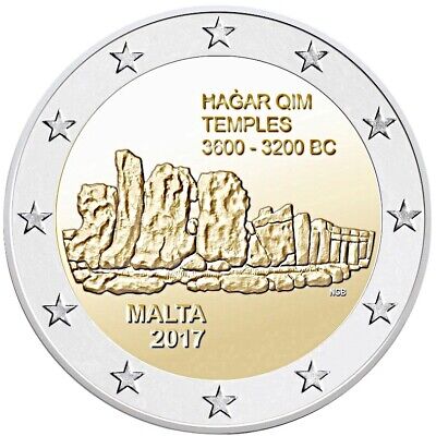 유네스코 문화유산으로 지정된 몰타의 거석 유적지들은 2016년부터 2022년까지 매년 2유로 기념주화로 발행되었다. 신전의 일부인 통로만 새겨진 5센트 동전만큼의 독특한 카리스마는 없고 신전보다는 약간 바다 위에 떠있는 기암괴석 같은 느낌이 있다. 저 거석들을 휘감고 노를 저어 빠져나와야 할 것 같은 느낌. 므나이드라 때문에 많이 찾아봐서 이 동전들을 우연히 만나게 된다면 이들 전부를 알아볼 수는 있을 것 같다.