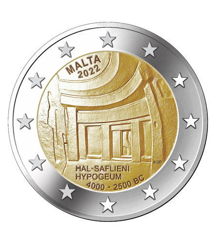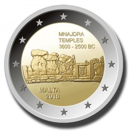 유네스코 문화유산으로 지정된 몰타의 거석 유적지들은 2016년부터 2022년까지 매년 2유로 기념주화로 발행되었다. 신전의 일부인 통로만 새겨진 5센트 동전만큼의 독특한 카리스마는 없고 신전보다는 약간 바다 위에 떠있는 기암괴석 같은 느낌이 있다. 저 거석들을 휘감고 노를 저어 빠져나와야 할 것 같은 느낌. 므나이드라 때문에 많이 찾아봐서 이 동전들을 우연히 만나게 된다면 이들 전부를 알아볼 수는 있을 것 같다.