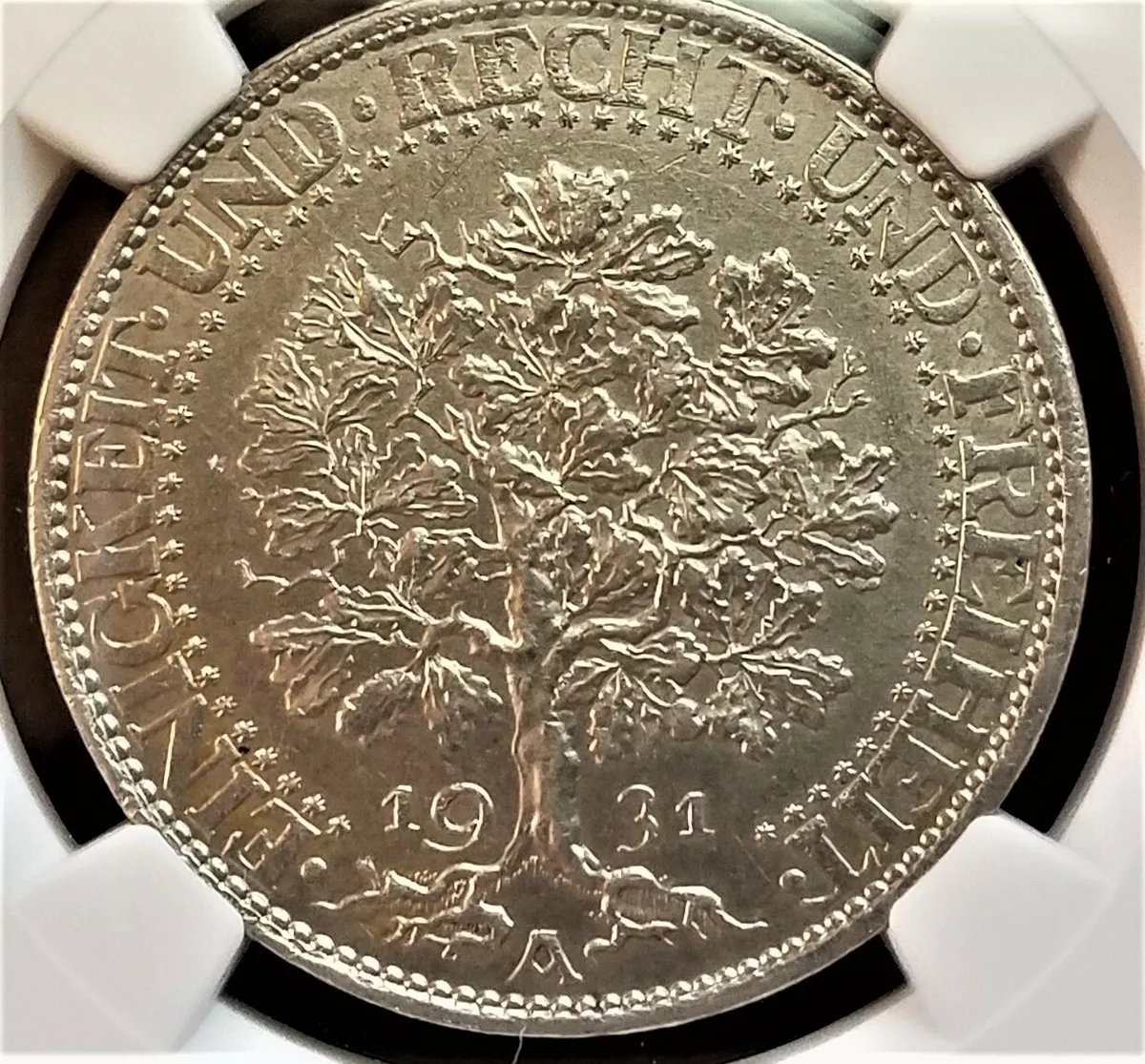 독일은 대대로 참나무를 열심히 동전에 새겼다. 독일 독수리가 하켄크로이츠를 감싸고 있는 참나무 화환을 움켜쥐고 있는 나치 독일의 동전부터 참나무가 아주 풍성한 고목으로 성장한 바이마르 시대의 동전까지. 소장용 금화 속의 참나무 잎사귀는 알타미라 동굴에서 나왔을법한 화석처럼 불멸이고 2차 세계대전 패망 후에는 급기야 참나무를 다시 심으며 심기일전하는 여인을 동전에 등장시킨다. 신성로마제국의 프리드리히대왕도 프로이센의 빌헬름 2세도 바이마르 공화국의 힌덴부르크도 나치 독일의 히틀러도 참나무 가지를 손에서 놓지 않는다.