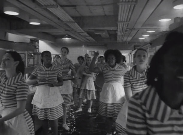 이 영화는 '스탭 모두 창의력을 발휘하며 메뉴 개발에 뛰어드는 자율적인 분위기, 폐업 직전에 갑자기 발견되는 돈뭉치, 계몽적인 식당 주인, 열정적인 직원들이 함께했던 이상적인 식당' <더 베어> 의 지옥 버전이고 <슬픔의 삼각형>속 호화 크루즈에서 가장 하위 크루들이 일하던 선박의 밑바닥을 따로 떼어내어 뉴욕 레스토랑 주방으로 옮겨놓은 스핀오프에 가깝다. 흑백처리된 화면을 뚫고 환기가 잘 되지 않는 주방 속의 찌든 기름 냄새가 흘러나온다. 뒤뚱거리는 선박 위에서 중심을 잃지 않으려고 모두가 안감힘을 쓴다. 주방 바닥은 물로 차오르고 주문은 늘 엉킨다. 그곳엔 극복할 수 없는 계급이란 것이 존재하고 불만에 찬 사람들이 어떤 되바라지고 폐부를 찌르는 어록을 쏟아내도 그런 옳은 말 따위는 귓등으로 듣는 상위 포식자가있을뿐이다. 직원 대다수가 이민자이지만 물론 미국인들도 있다. 낙태 이유를 묻는 질문에 줄리아는 거의 모든 항목에 체크를 한다. 기를 수 없어서. 원치 않는 아이여서. 돈이 넉넉하지 않아서. 배우자가 원치 않아서. 모두들 미국인이 되고 싶어 버티고 또 버티지만 미국인의 삶이라고 해서 꿈같진 않다.