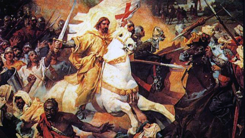 갈리시아는 이베리아 반도에 이슬람 세력이 출몰해서 가톨릭 왕국들의 위신이 점점 좁혀질때에 이슬람 세력을 축출하기 위해 거의 800여 년간 벌어진 스페인의 국토 회복 운동 '레콩키스타'가 벌어졌던 주요 지역이다. 7세기 반 동안 내내 큰 전투로 몸살을 앓은 것은 아니지만 그 기간 동안 이슬람과 가톨릭 세력 간의 지루한 충돌은 지속적이었기에 성 야고보가 전투 중에 하늘에서 백마를 타고 나타나 무어인을 물리쳤다는 전설마저 생긴다. 야고보는 급기야 '무어인을 죽이는 성인' 이라는 산티아고 마타모로스 (Santiago Matamoros)라는 군신의 명칭까지 얻게 된다. 그리고 이후의 스페인 국왕과 기사들은 ¡Santiago y cierra, España!” (산티아고여, 스페인을 닫아주소서!)라는 문장을 외치며 전투에 임하게 된다.
