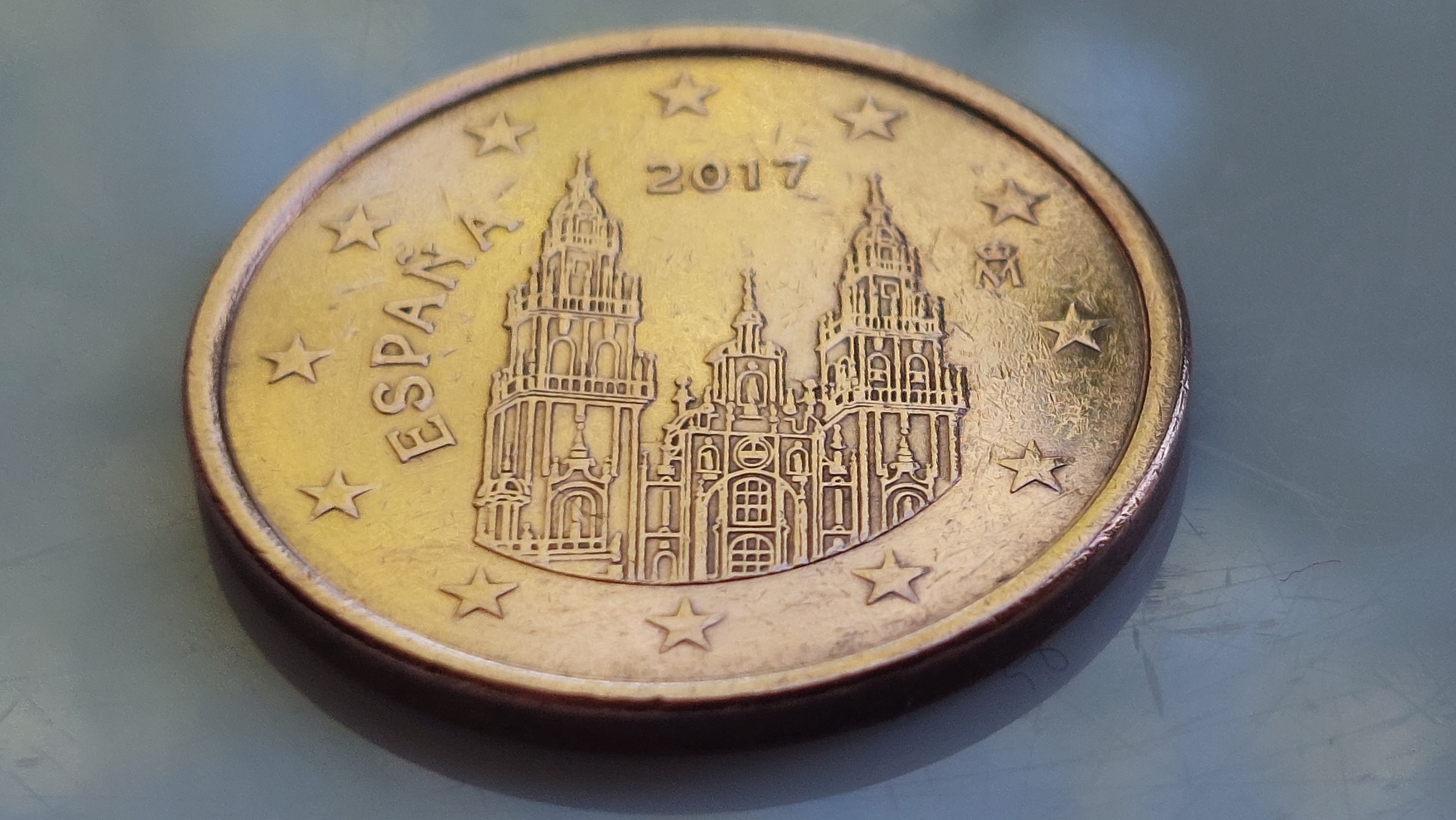 스페인은 3종류의 센트 동전 모두에 성당 하나를 세웠다. 가우디의 사그라다 파밀리아도 세비야의 대성당도 톨레도 성당도 아닌, 산티아고 데 콤포스텔라 대성당(Catedral de Santiago de Compostela)이다. 독실한 가톨릭 국가 스페인이 자신의 화려한 성당들을 뽐내고자 했으면 동전마다 다른 성당을 새길 수도 있었겠지만 한 성당에 올인했다. 산티아고 대성당은 스페인 사람들에게 단순한 종교 건축물이 아니라 유럽 전역에서 몰려드는 중세의 순례자들이 발끝이 닳도록 걸어와 도달하던 산티아고 순례길의 종착역이자 그들의 수호성인 성 야고보가 잠들었다 여겨지는 곳이다. 오랜 기간 이슬람 문명과 자리다툼을 해야 했던 유럽전역의 기독교 역사가 포개지는 장소이기도 하다.