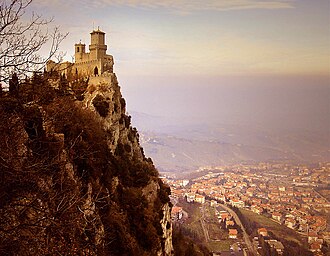 사방이 육지로 둘러싸인 내륙국가는 세상에 많지만 특정 국가 안에 그 나라의 도시처럼 자리 잡은 나라라니 참으로 생소하다. 나름 삼면이 바다로 둘러싸인 반도국가 출신인지라 내륙국가를 떠올리면 급습하는 특유의 갑갑함이 있다. 달걀물과 튀김가루 사이를 두세 번 왕복하며 단단해진 튀김옷을 뒤집어쓰고 있는 키예프 커틀렛처럼 튀길 때마다 매번 그 익힘 정도를 가늠하기 힘들어서 미궁에 빠지는 느낌이랄까. 내륙국의 가장 큰 단점 중 하나는 자체 항구가 없어서 자유로운 교역이 불가능한 것인데 그래도 산마리노는 그나마 바다가 가까워서 아마 높은 산에 오르면 아드리아 해도 보일 것 같다.