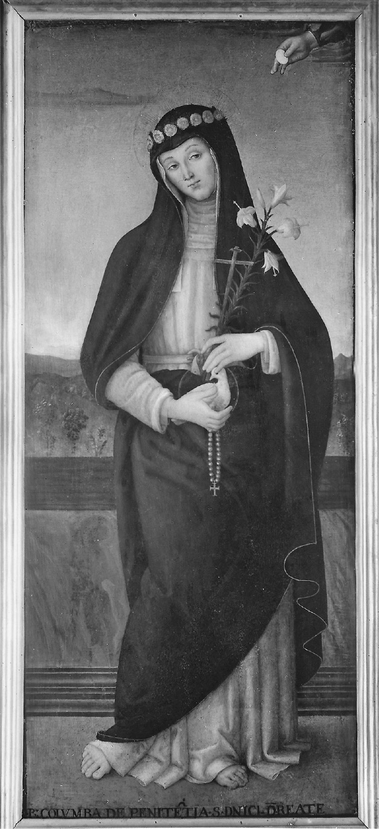세례명 콜롱브는 비둘기를 뜻하기도 한다. 그녀가 결국 프랑스의 상스(Sens) 지방에 정착했을때 로마 제국 황제가 그녀를 자신의 아들과 결혼시키려고 했는데 거부하자 산채로 화형에 처해지는데 그때 기적적으로 폭우가 내리고 암곰이 그녀를 지켜주지만 결국 참수당한다. 그래서 성화 속에서 생 콜롱브는 왕관을 쓴 처녀이자 비둘기와 암곰과 함께 묘사되는 경우가 많다. 생 콜롱브이자 스페인의 콜롱브로 불려지는 그녀가 어쩌다가 안도라의 수호성인이 되었을까. 아마도 그녀가 스페인의 갈리시아 지방에서 살다가 프랑스까지 가서 순교했고 이교도에서 기독교로 개종하려다 박해를 받은 인물들은 상대적으로 훨씬 더 추앙받는 것을 고려할 때 스페인과 프랑스 문화가 절묘하게 섞인 안도라에서 기독교가 자리 잡는 시기에 수호성인으로 받들 여진 것으로 보인다.