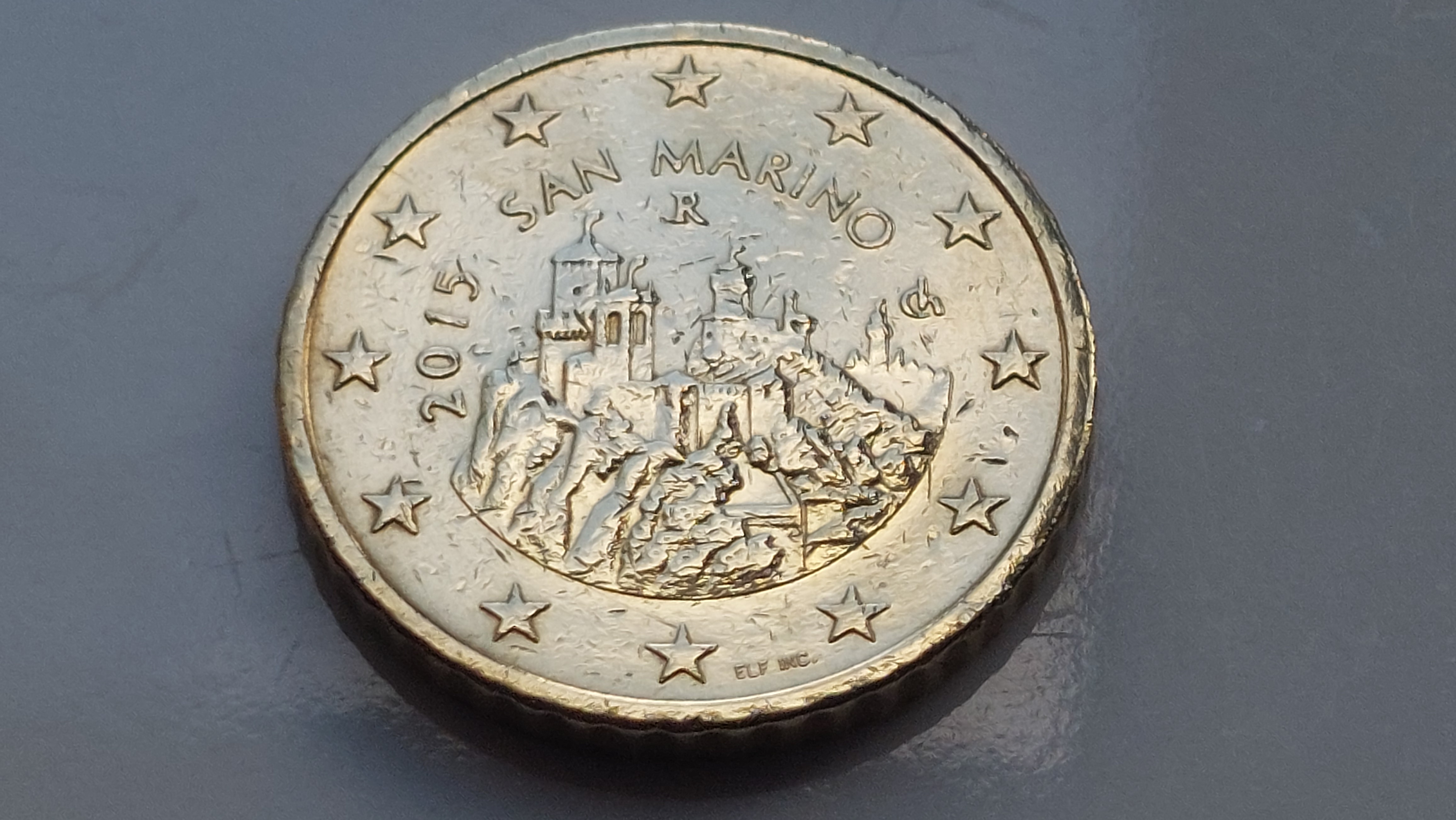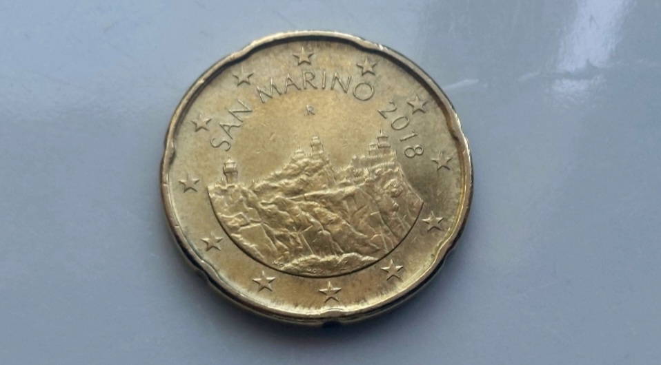 시중에 유통되며 현역으로 이리저리 굴러다니는 유로 동전에 '희귀하다'는 수식을 다는 게 좀 웃기지만 어쨌든 산마리노의 동전이 독일 독수리 동전이나 아일랜드 하프 동전보단 보기 힘든 동전인 것은 사실이다. 그리고 얼마 전 산과 성탑이 그려진 산마리노 동전이 또 굴러들어 왔다.