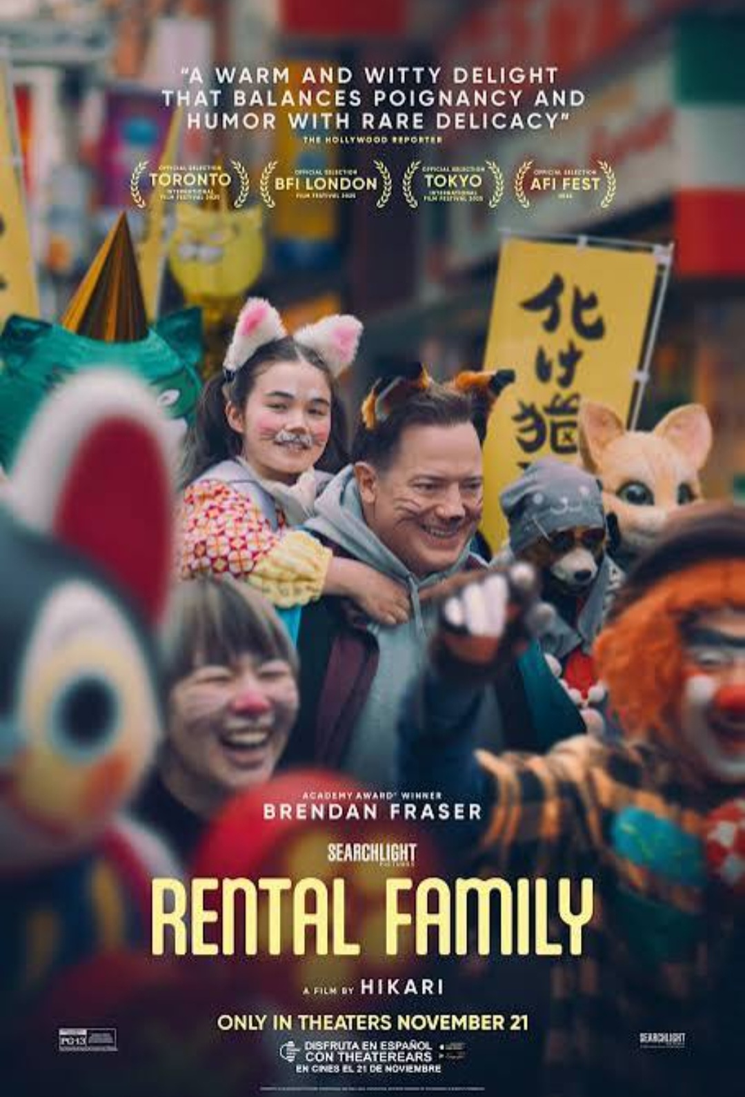 <렌탈 패밀리>를 보았다. 지하철 안에 일본인들과 함께 앉아 있는 브랜든 프레이져가 시선을 끌었다. 필립(브랜든 프레이져)은 도쿄 생활 7년 차의 무명 배우이다. 간간이 오디션을 보고 광고를 찍고 단역 배우 생활을 하며 생계를 이어가는 아직 어디에도 완전히 속하지 못한 듯한 이방인이다. 미국 배우가 일본에 와서 고독을 느낀다는 설정에서 <사랑도 통역이 되나요?> https://ashland.tistory.com/139 를 떠올리지 않을 수 없다. 그러나 소피아 코폴라의 섬세한 드라마에서 위스키 광고를 찍으러 도쿄로 온 빌 머레이가 정체된 결혼 생활과 커리어의 정점에서 공허를 느끼는 남자였다면 필립은 아직 하고 싶은 연기를 하지 못한 풋내기 연기자이고 여전히 혼자이다.